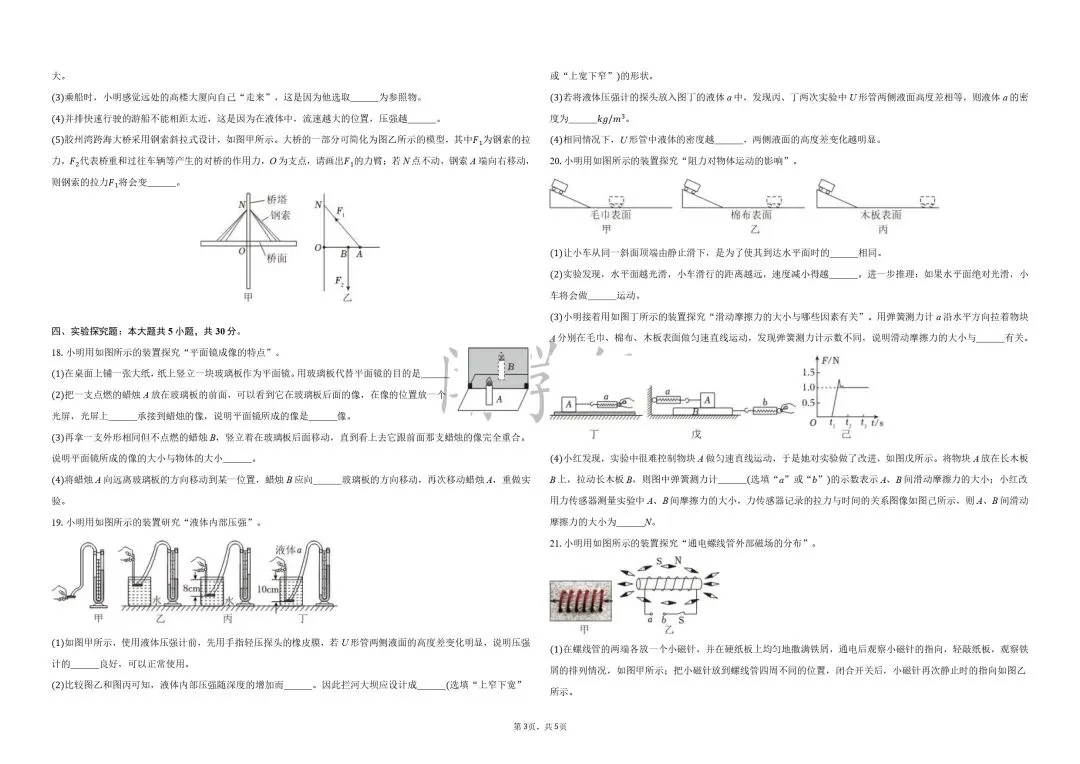 1.越大 深度;2.连通器;高度总是相同;3.D;4.(1)两张纸向中间靠拢