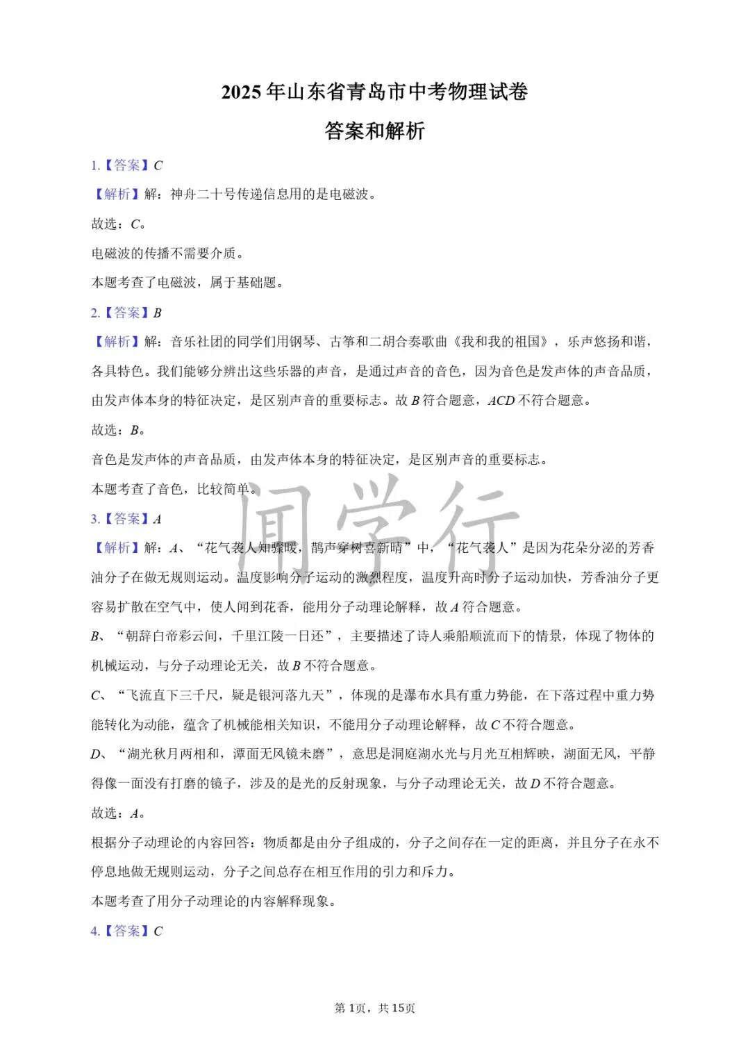 1.B;2.B;3.振动 音调 空气