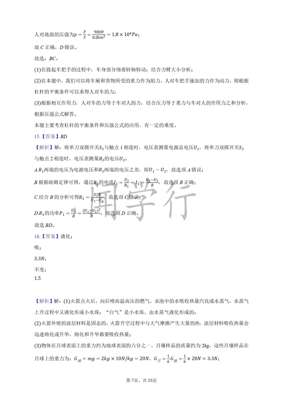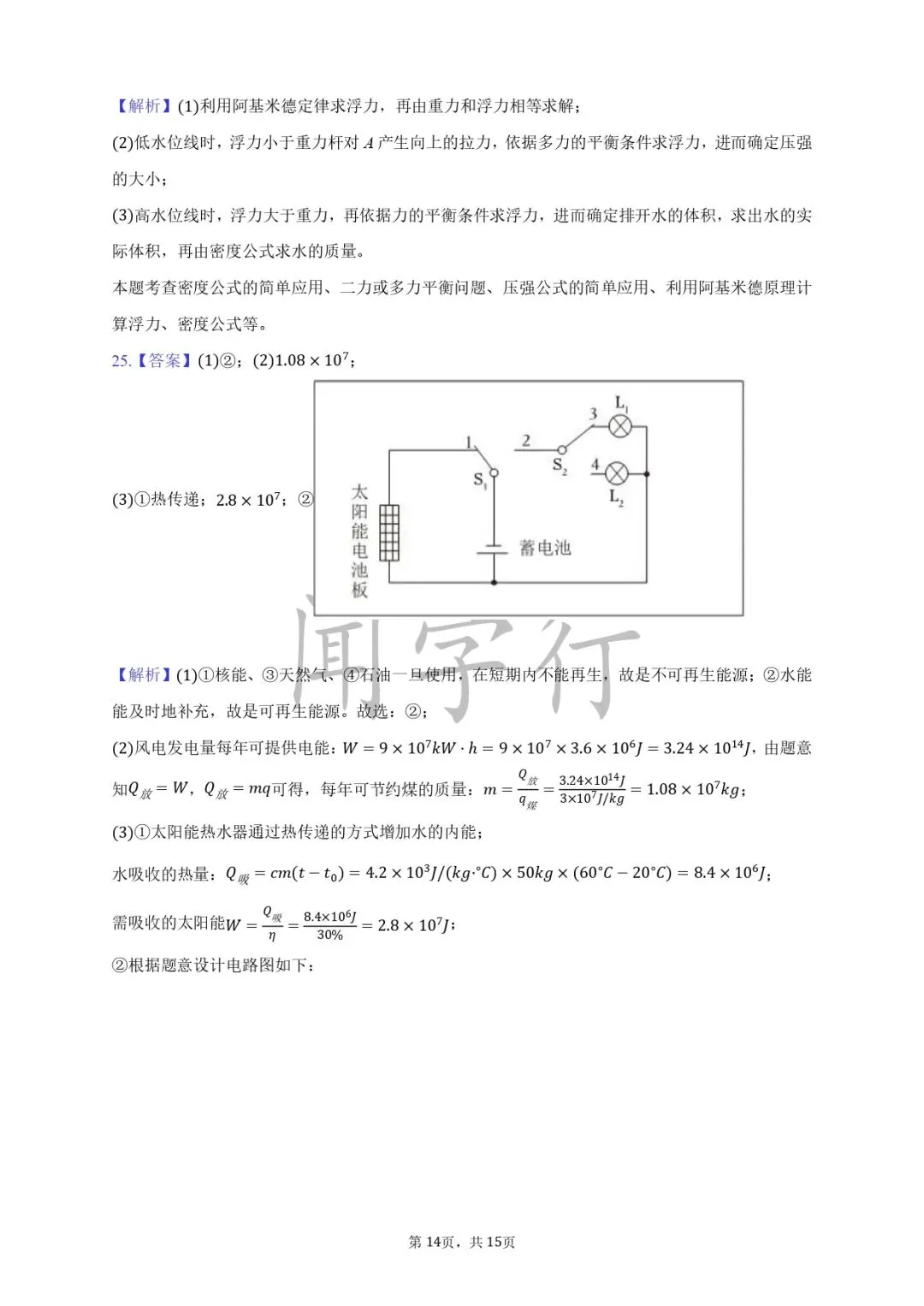 1.B;2.B;3.(1)3.6×106J;(2)95.7℃