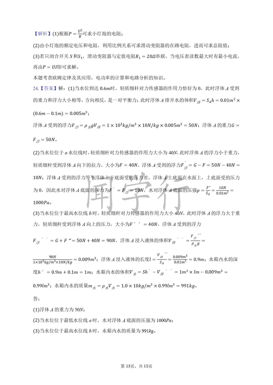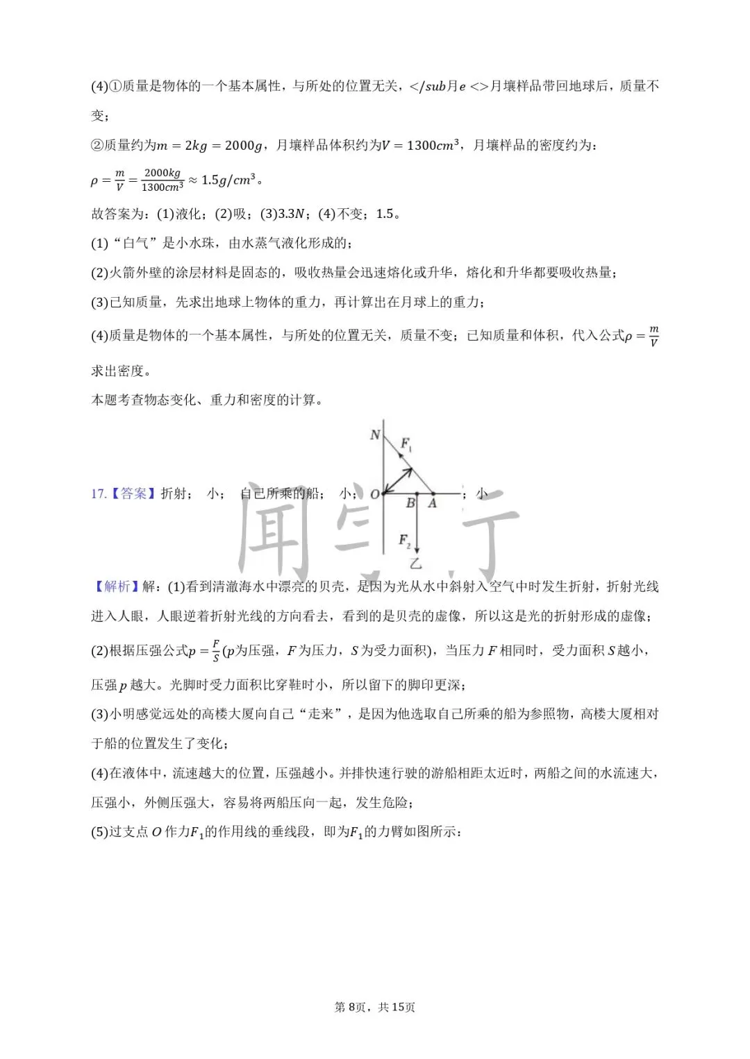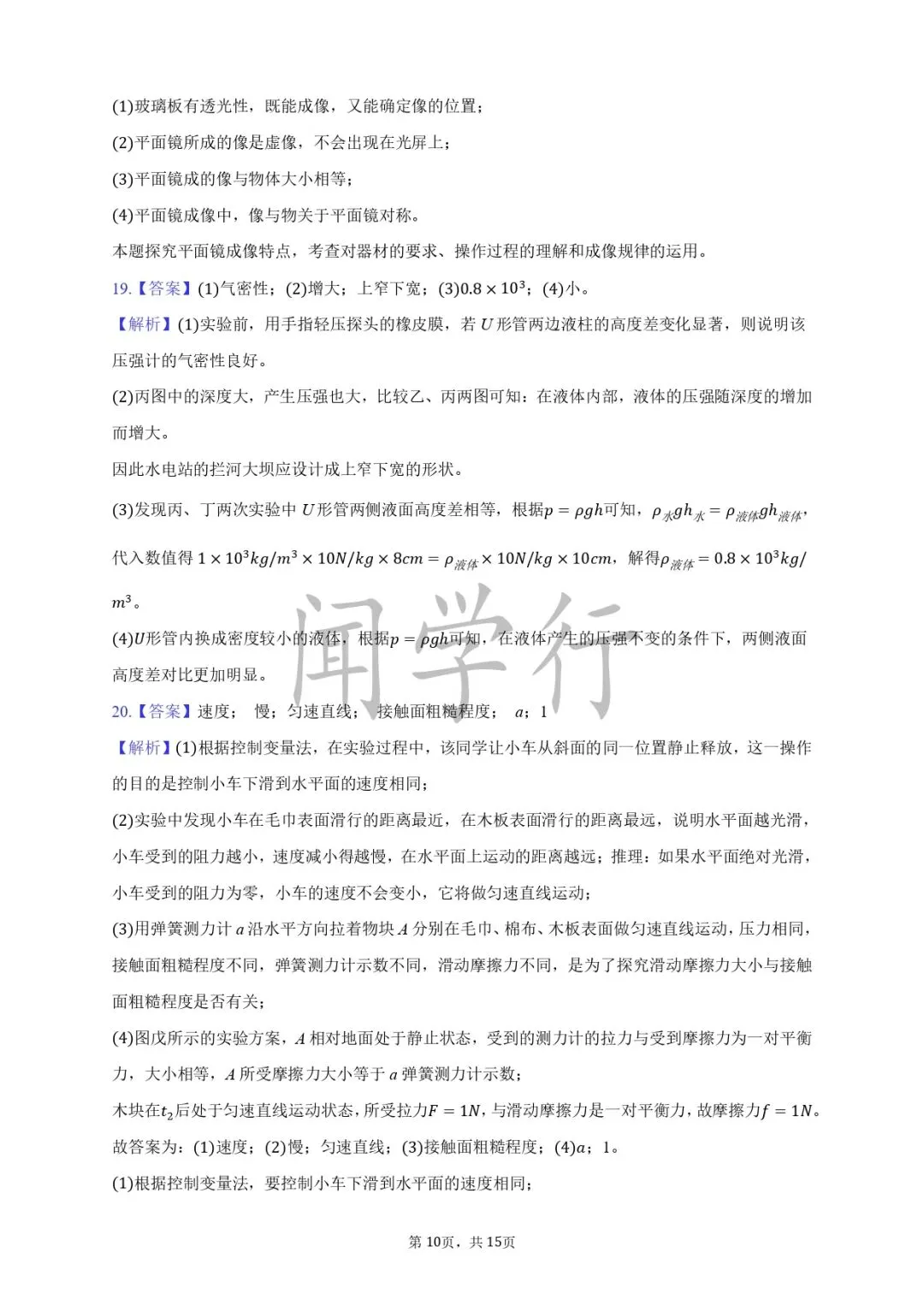 1.大 小;2.p=F/S;3.相等 大 大;4.p=ρgh;6.托里拆利;7.减小 增大;8.小 大