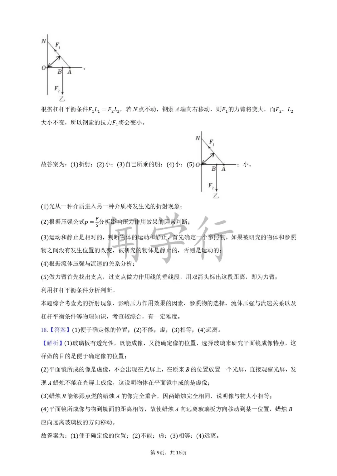 1.直线;2.同一平面内 两侧 等于;3.虚 相同 相等 对称;4.同一平面内 两侧 增大 减小;5.可逆的