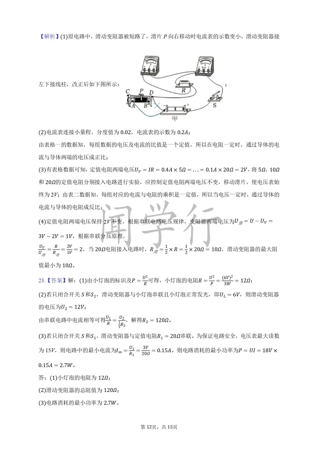 1.不变 减小 减小;2.25 10