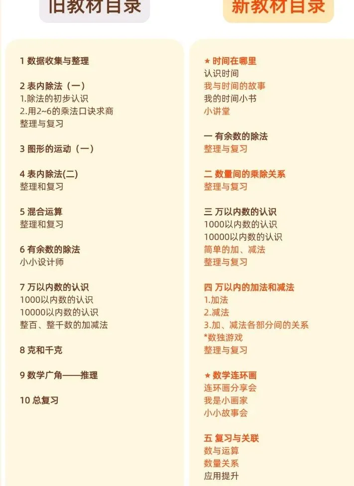 一、新旧教材目录对比