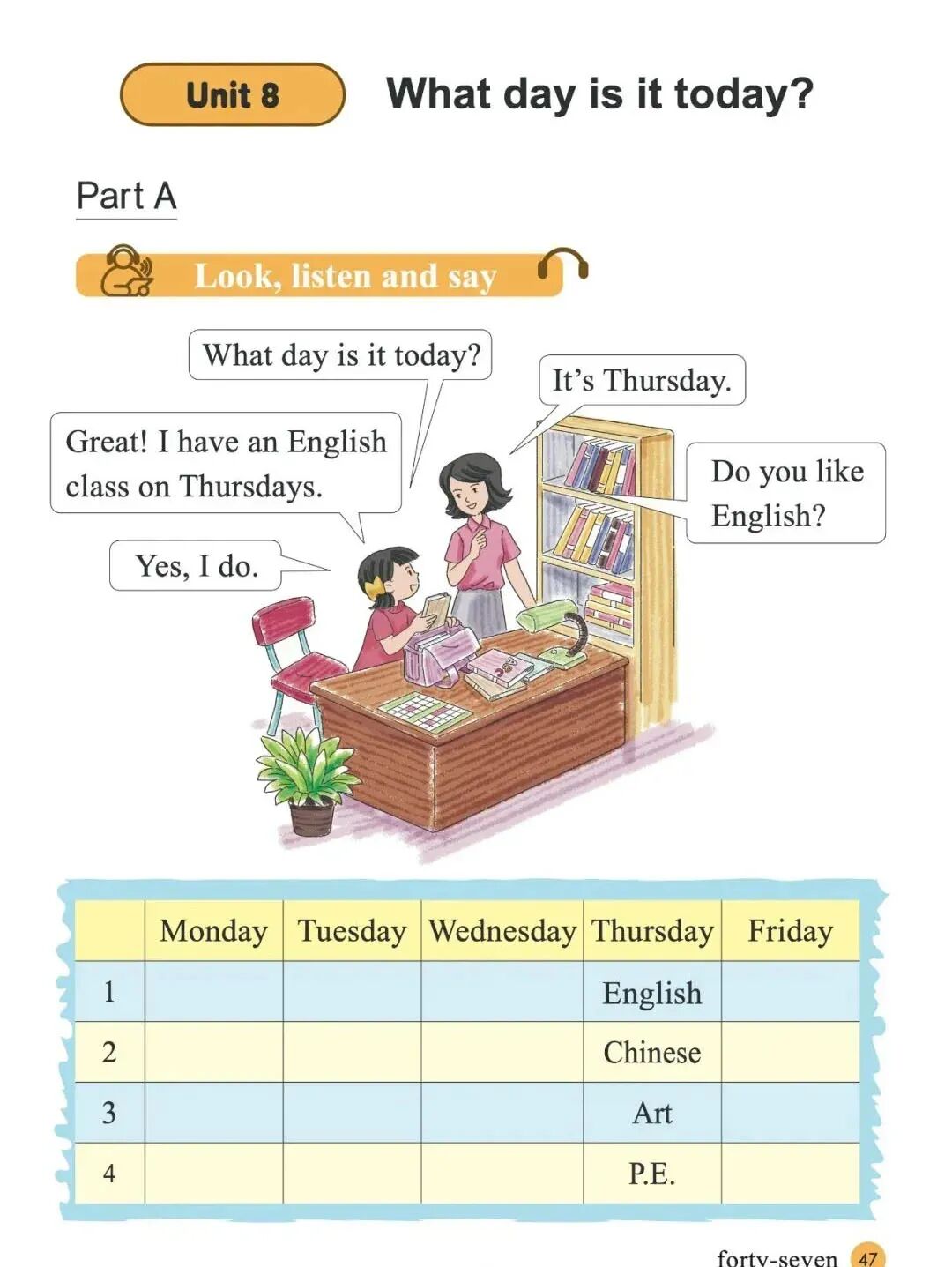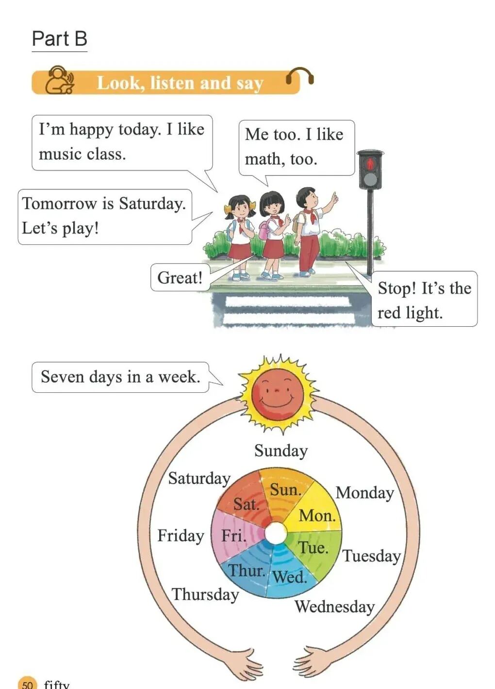 当前位置:首页>小学教材>【课文听力】(2025春新教材)接力版小学英语三年级下册 Unit 8 What day is today?