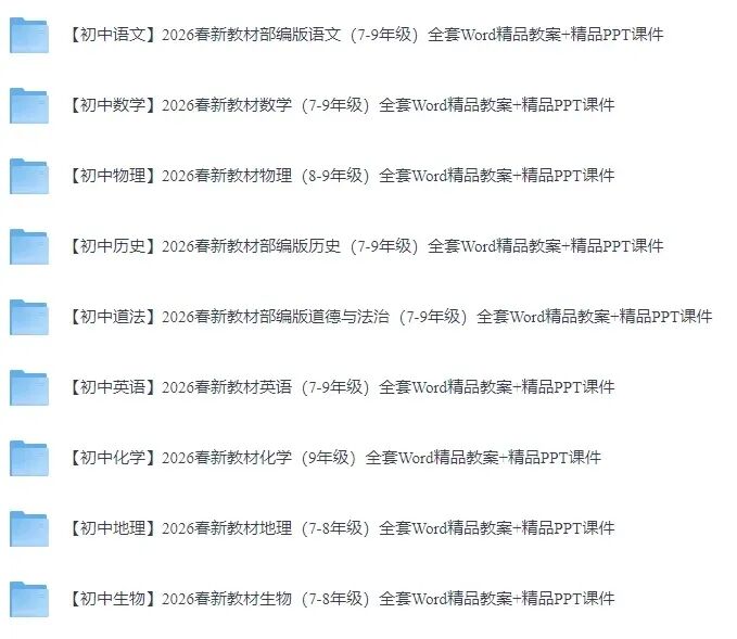 当前位置:首页>初中教材>【初中全科】2026春新教材全版本(7-9年级)全套Word精品教案+精品PPT课件