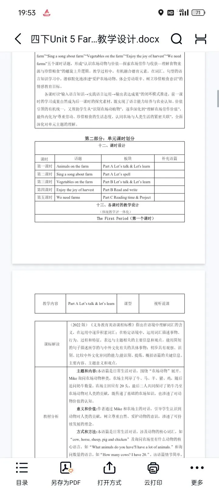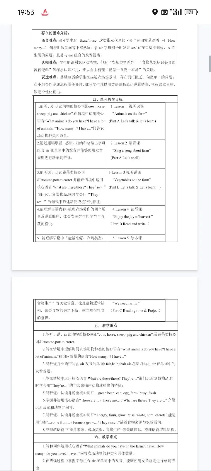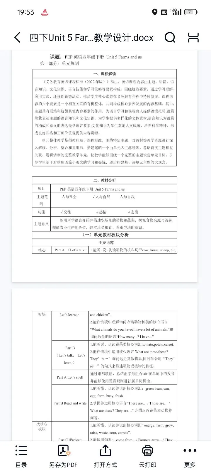 26春新教材人教版小学英语四年级下册Unit 5 Farms and us教学设计分享