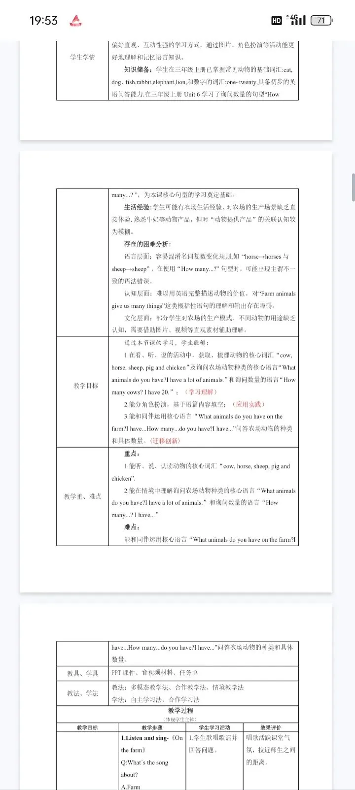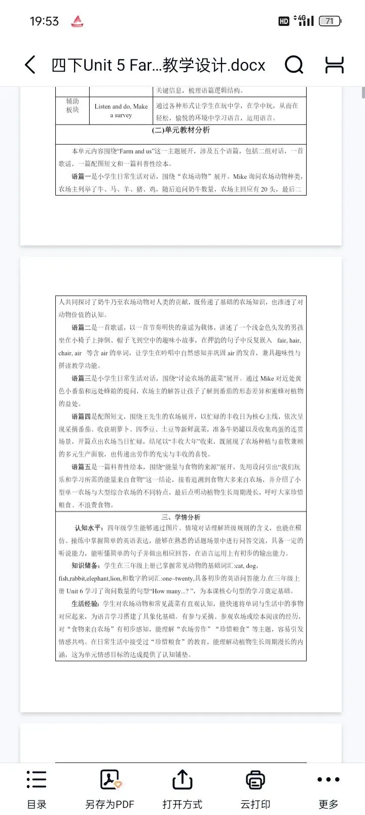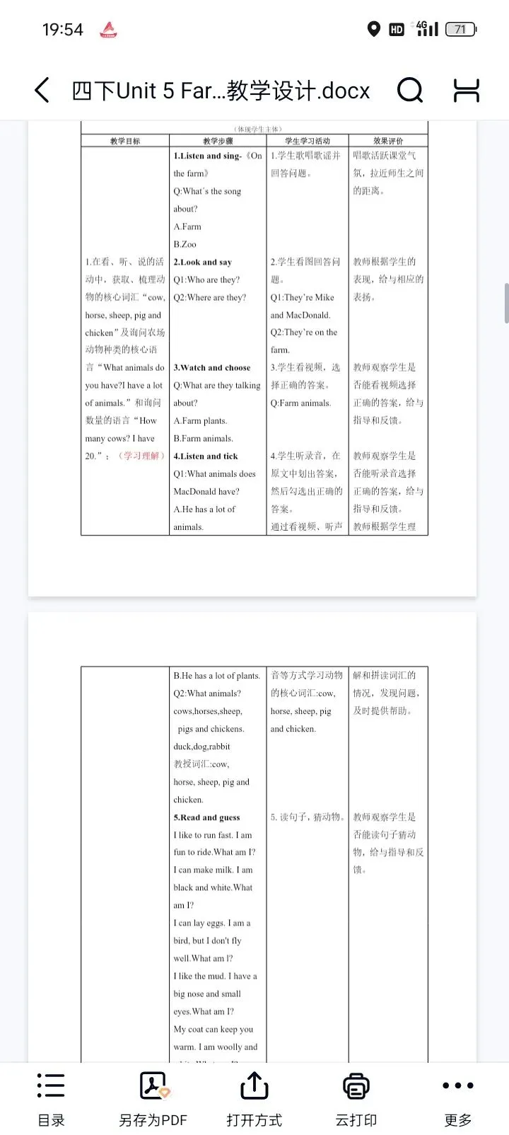 26春新教材人教版小学英语四年级下册Unit 5 Farms and us教学设计分享