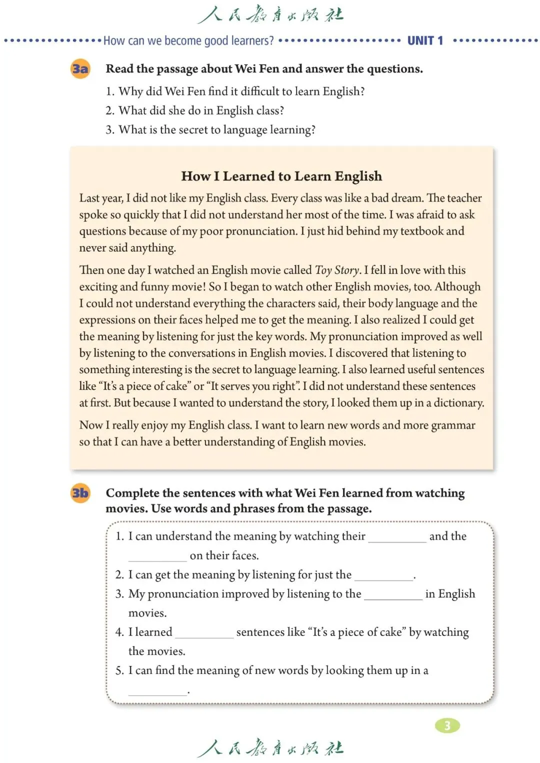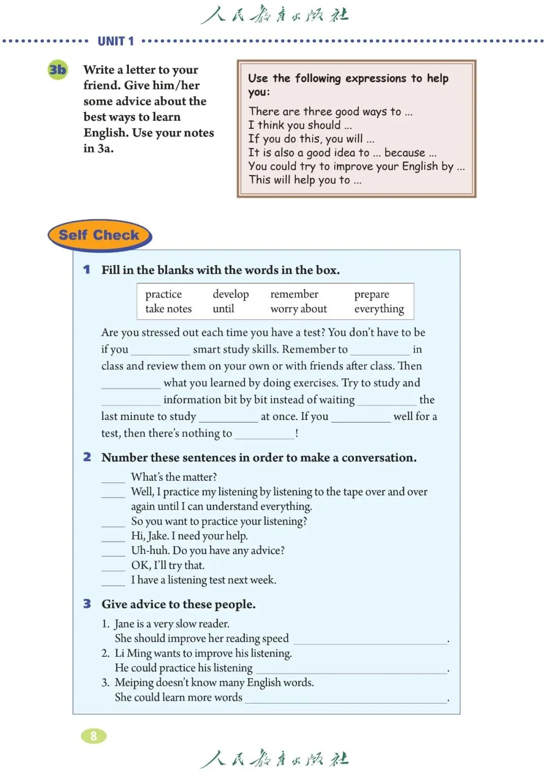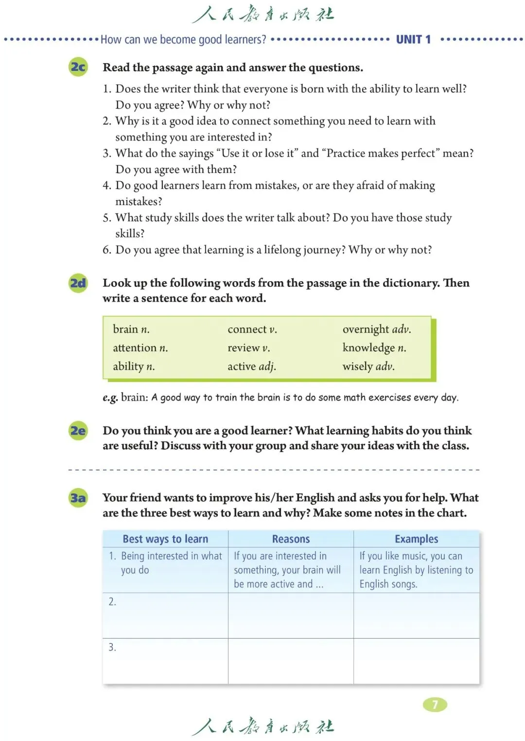 【1】第一单元 How can we become good learners?:主要内容包含学习方法类词汇、情态动词could表建议的用法、宾语从句(that/if/whether引导)的用法,学习询问与分享学习方法,掌握高效学习的表达,提升英语学习能力
