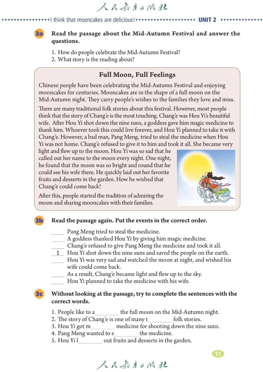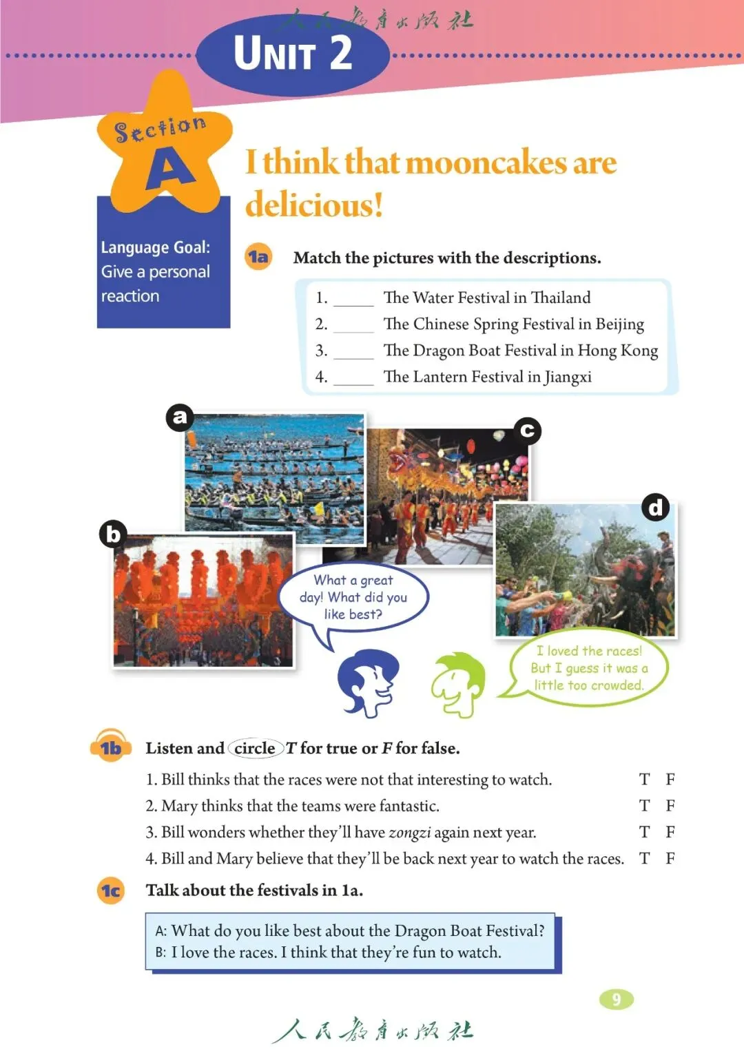 【2】第二单元 I think that mooncakes are delicious!:主要内容包含节日类词汇、宾语从句(what/how引导)的用法,了解中西方传统节日的习俗与文化,掌握节日相关的表达与句型,培养跨文化交际意识