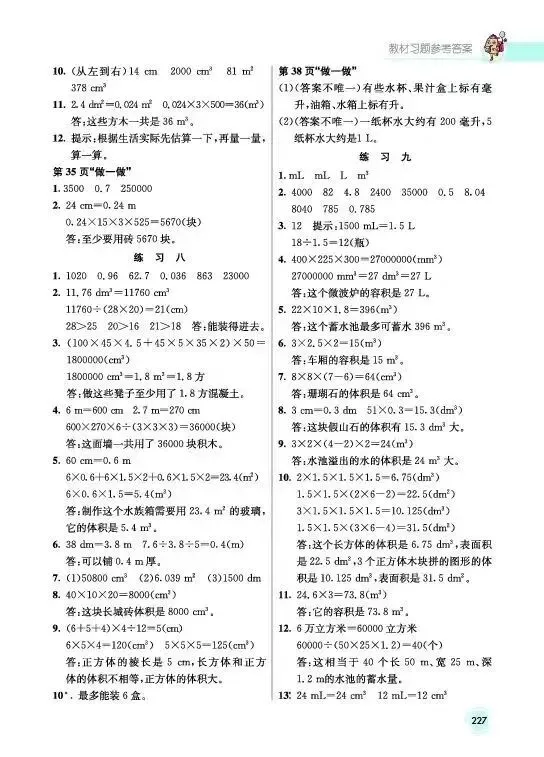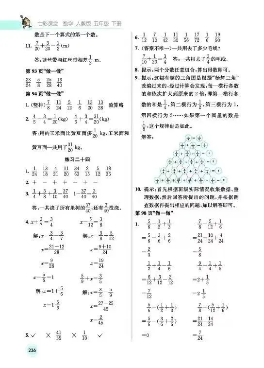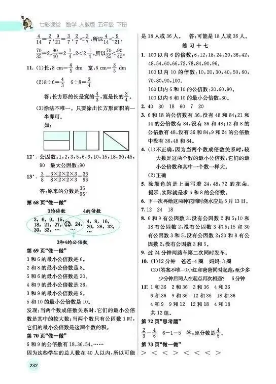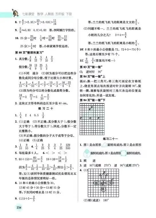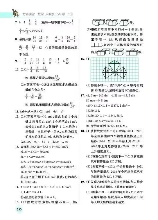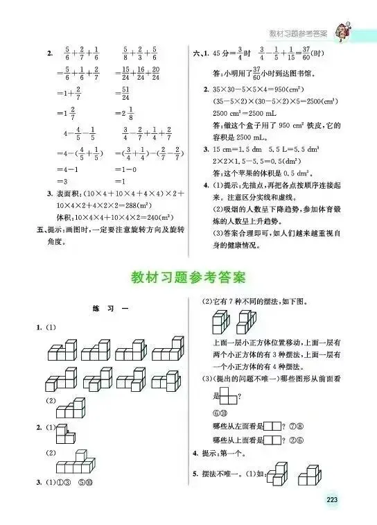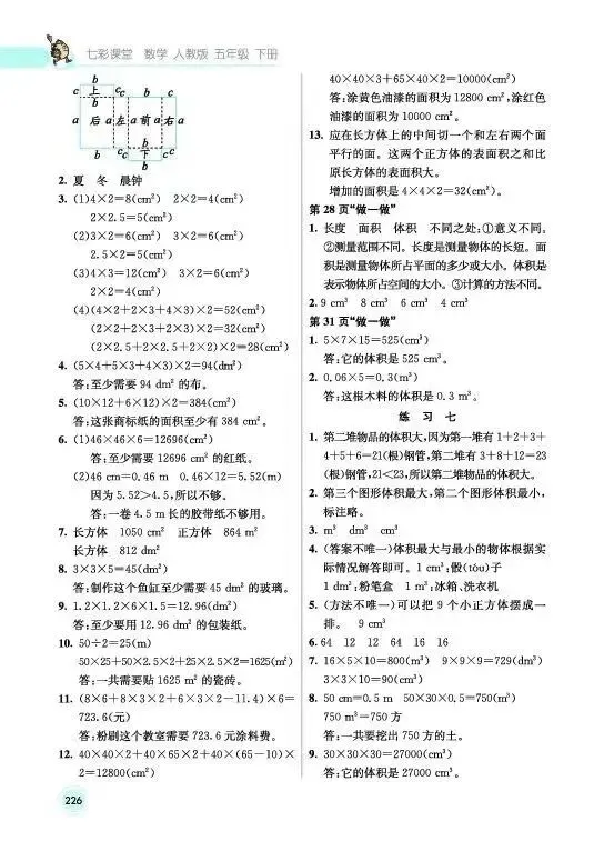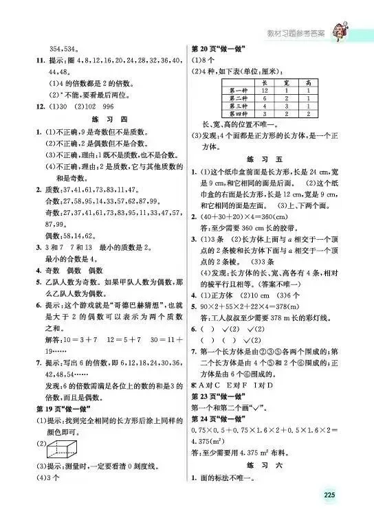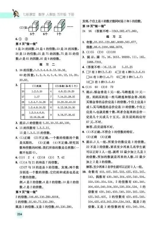 >2026年春季小学五年级下册人教版数学课本课后参考答案