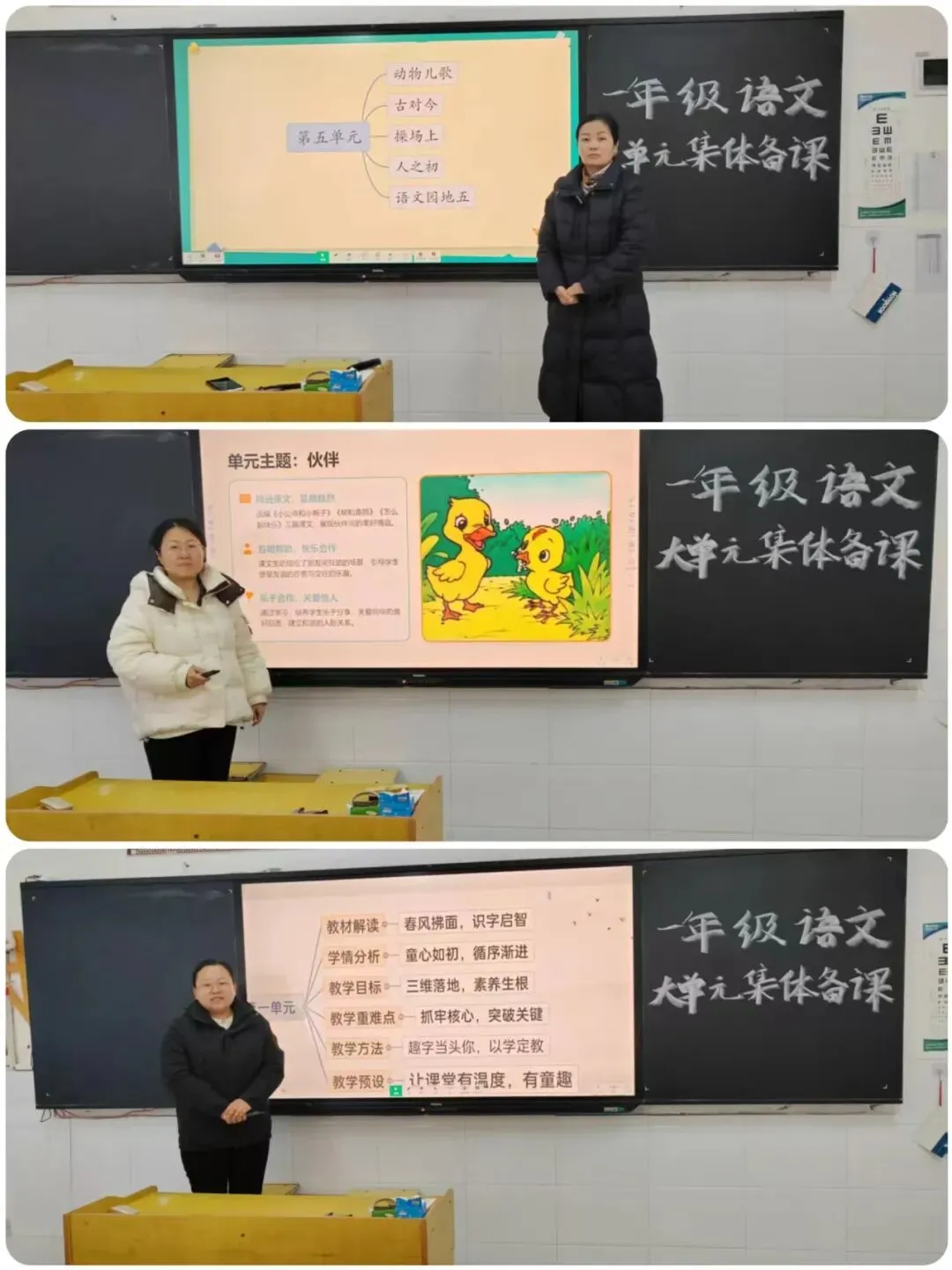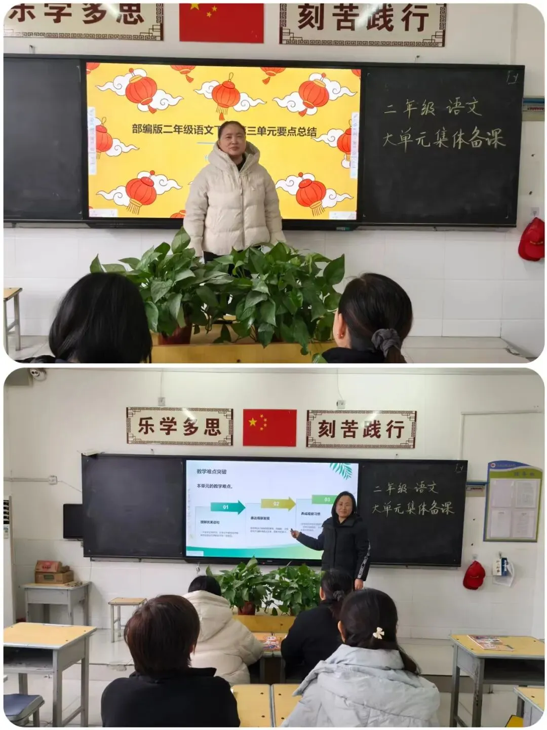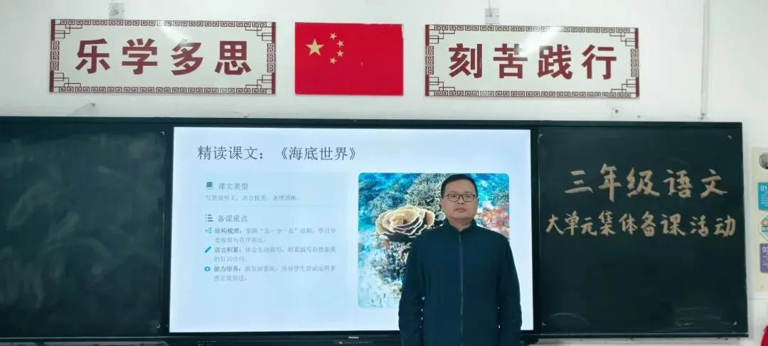 本次活动严格遵循“年级组牵头、学科组落实”的组织架构,以年级为单位划分研讨阵地,各年级内再分语文、数学、英语三个学科组同步开展活动。活动中,各位教师紧扣自身分配的教学单元,结合假期备课成果,逐一进行细致汇报。从单元整体教学目标的精准定位,到每一课重难点的突破策略,再到学情分析与教学环节的创新设计,教师们条理清晰、详实具体地展现了个人备课的思考与成果,为后续集体研讨筑牢了根基。