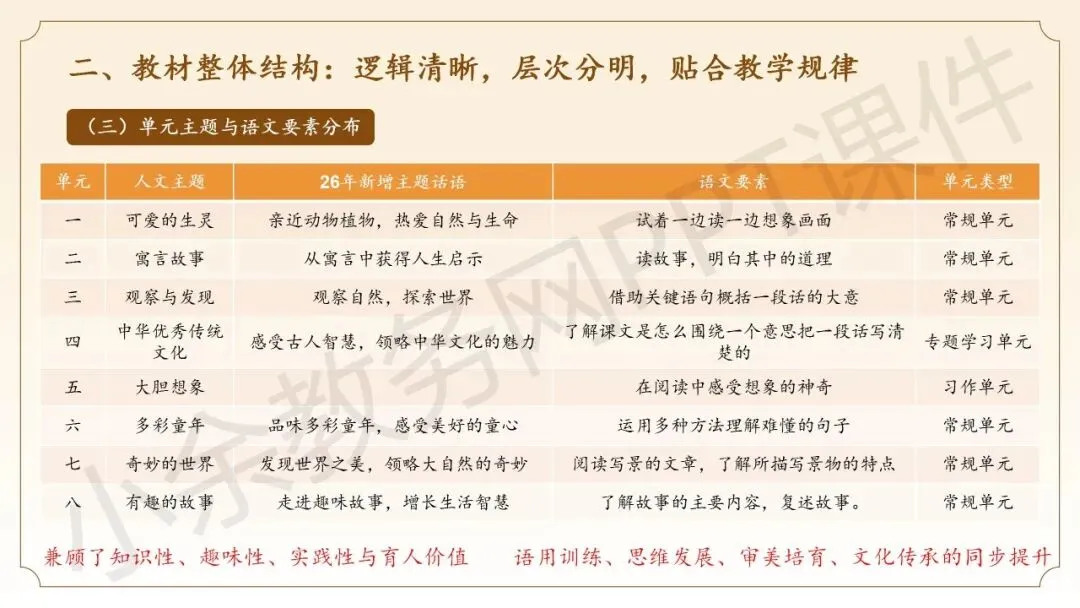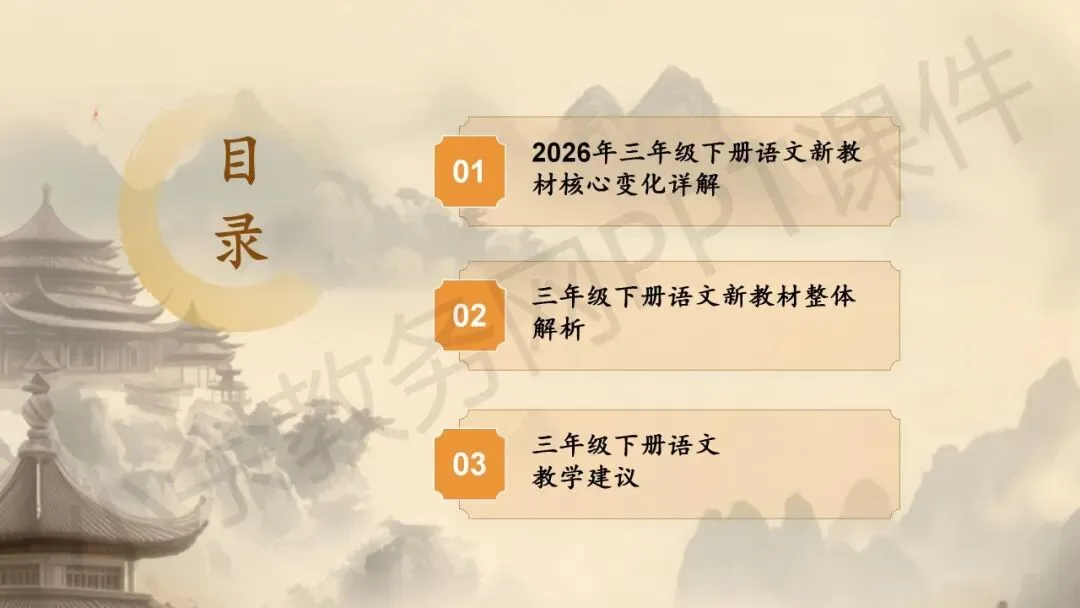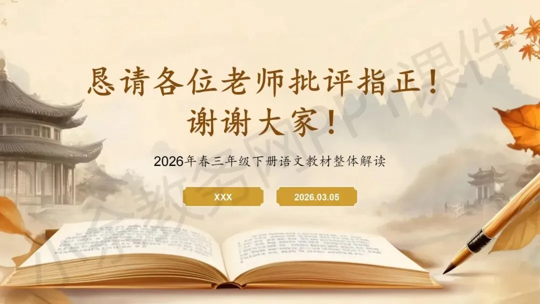 关于《深耕新教材,把握新航向》为主题的「小学 2026 春季下学期三年级语文下册新教材整体解读」PPT 课件就介绍到这里了,希望本次分享的资料对您有用哈^_^^_^