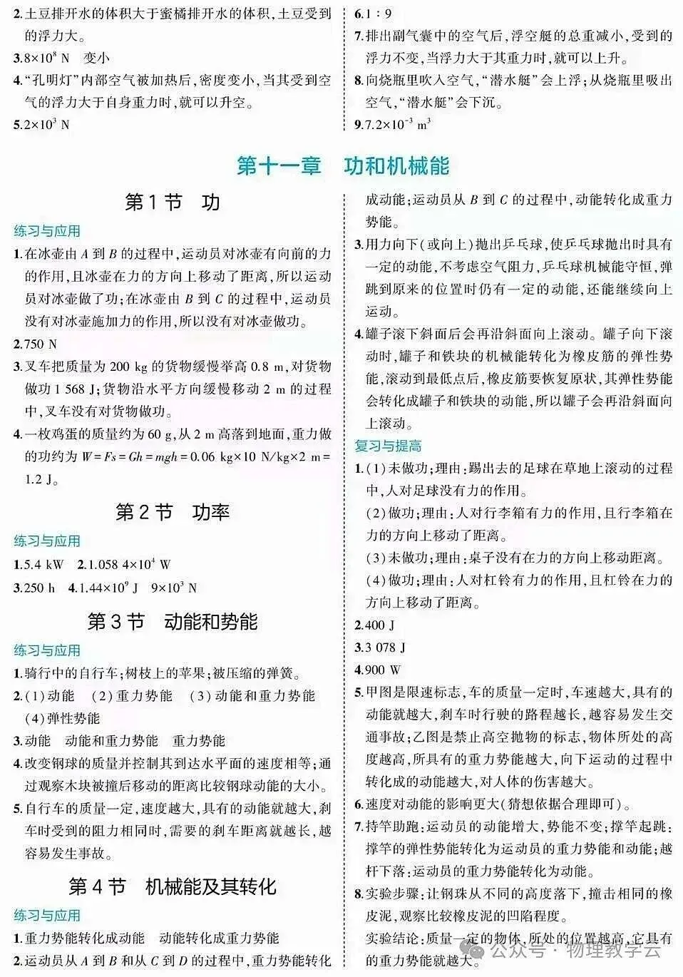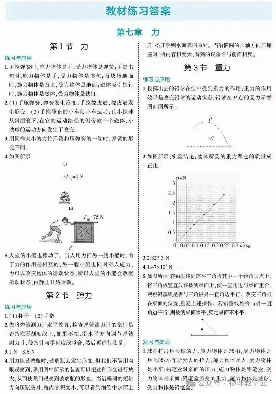 >初中物理新教材(八下)练习题答案
