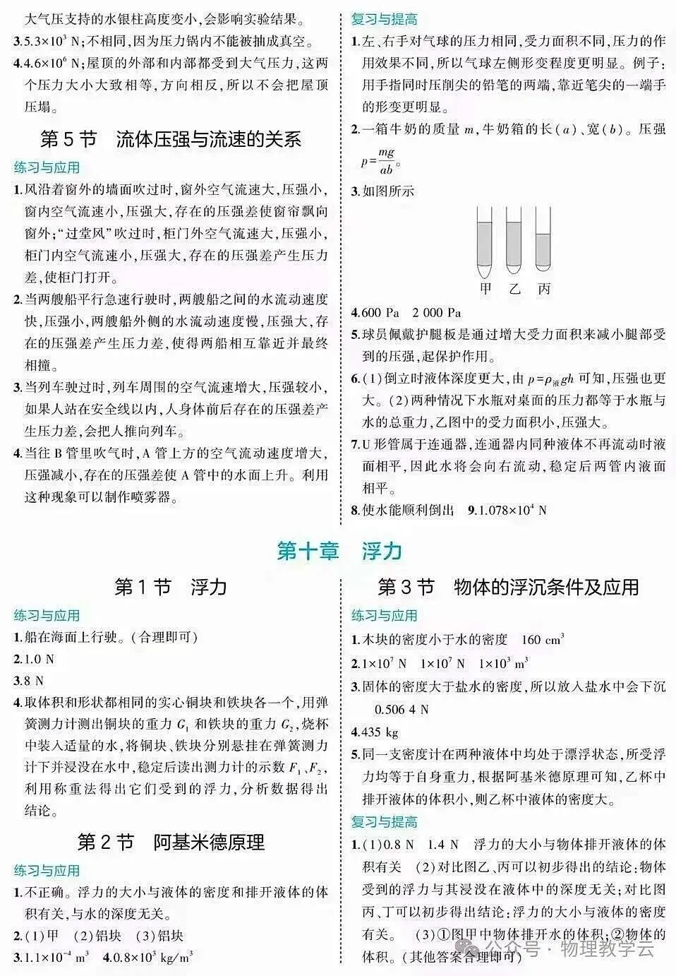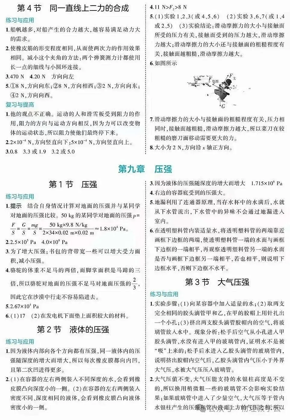 初中物理新教材(八下)练习答案