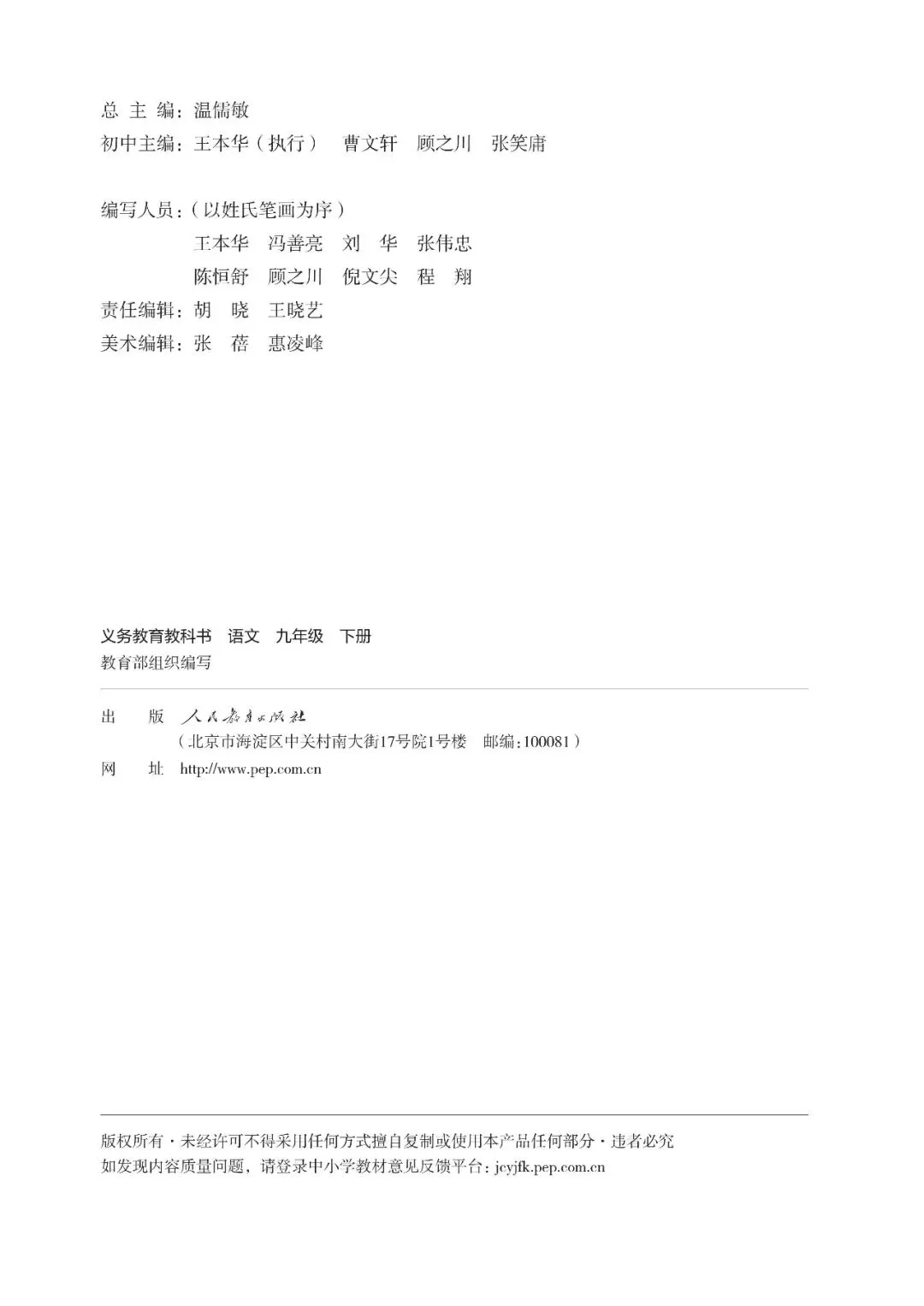 2026春人教部编版语文九年级下册电子课本在线阅读: