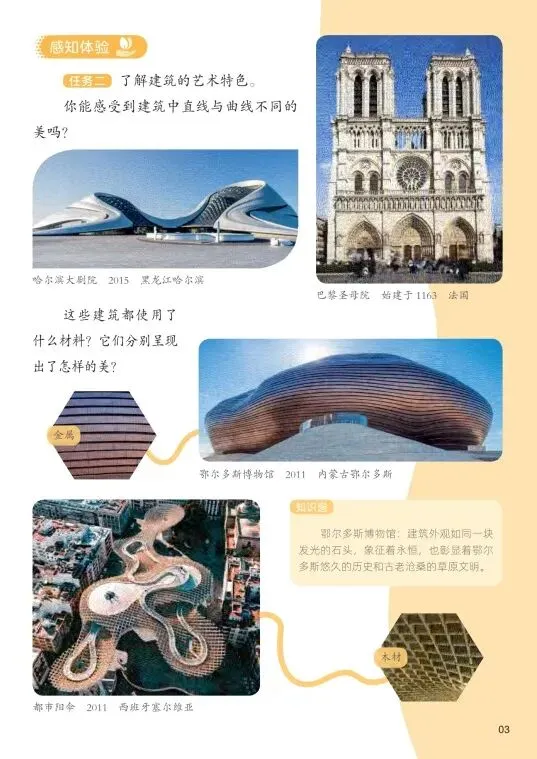审美感知:能感受建筑的造型美、结构美与文化美,初步建立对建筑艺术的欣赏能力。