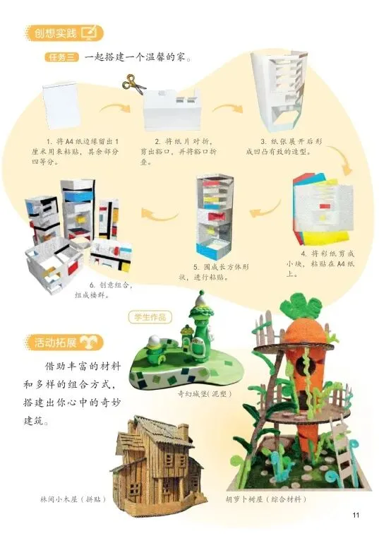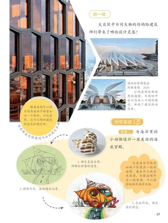 创意实践:能结合自然与生活灵感,设计并搭建具有创意的建筑模型。