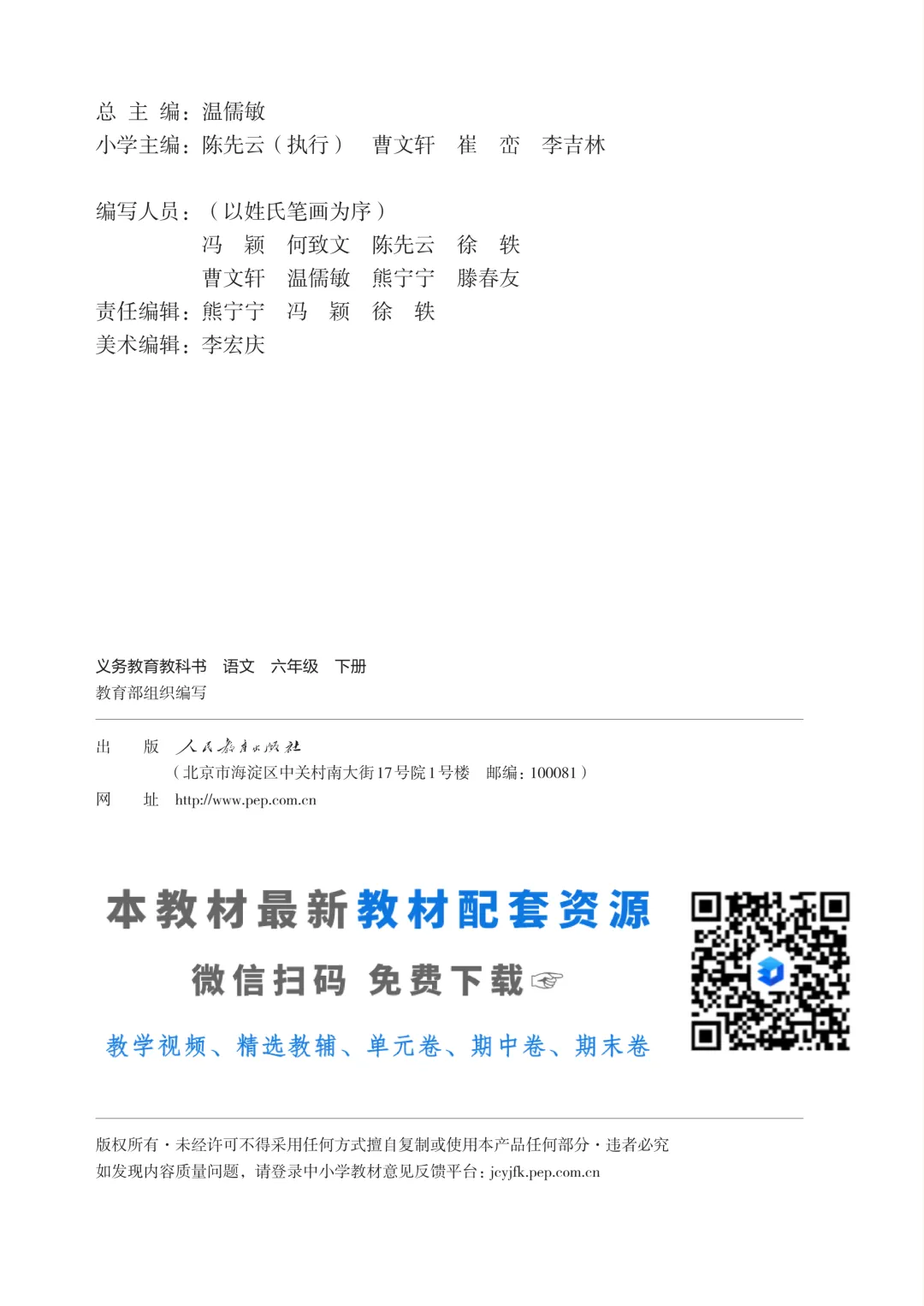 【预习】2026春小学人教版语文六年级下册电子课本(高清PDF电子版,免费下载)