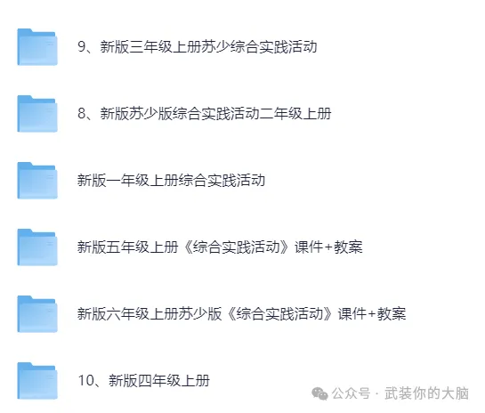 可以点击上方蓝色字体 “武装你的大脑” → 点右上角 “...”(新教材)江苏苏少版苏科版小学综合实践活动(123456年级上下册)课件ppt+教案,可备课可下载编辑