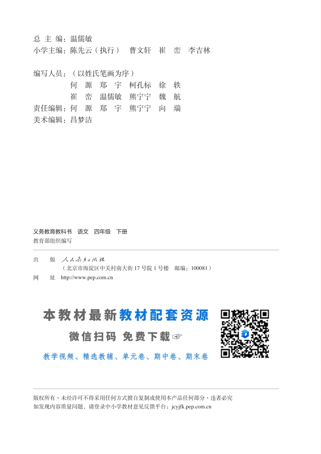 【预习】2026春小学人教版语文四年级下册电子课本(高清PDF电子版,免费下载)