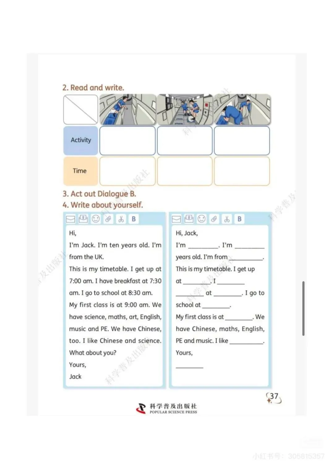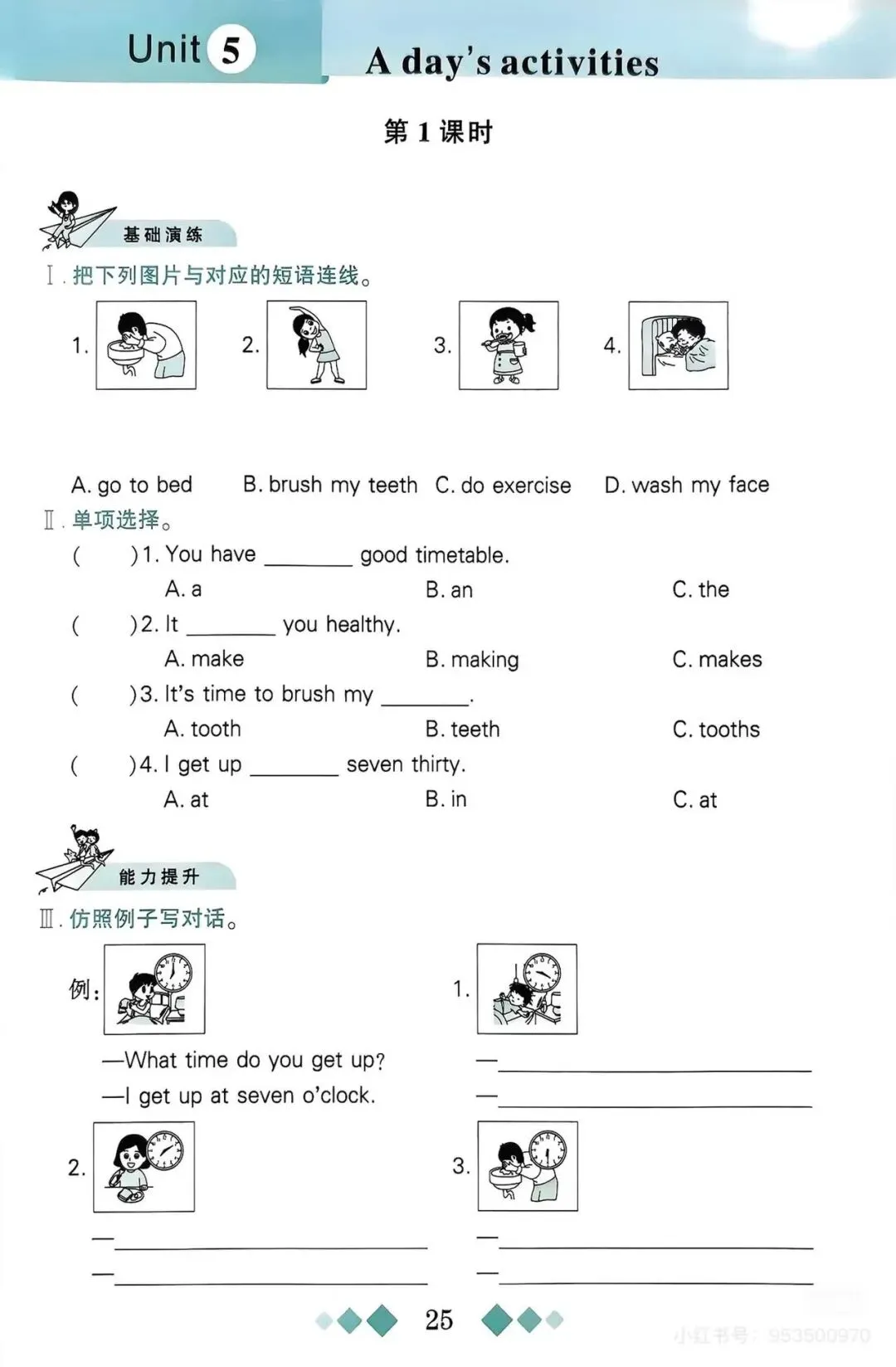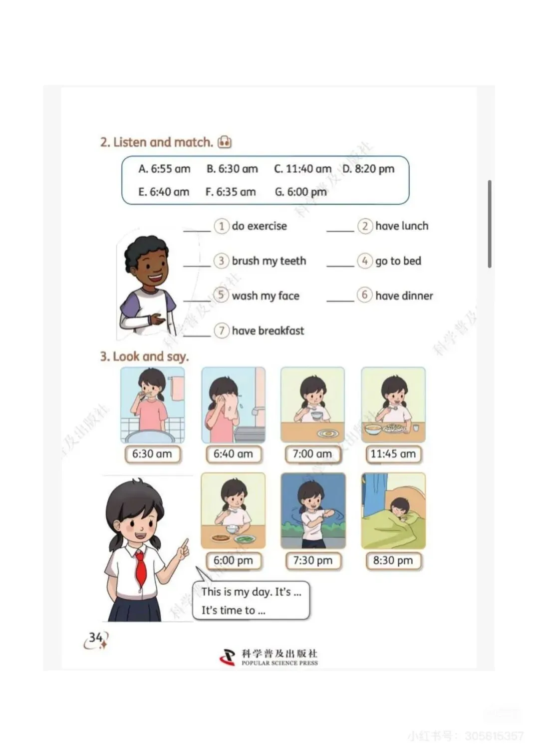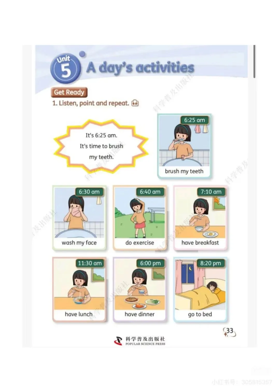 >【2026年春期新教材】科普版小学英语四年级下册教材Unit5 A day's activities电子版,课堂笔记及练习题