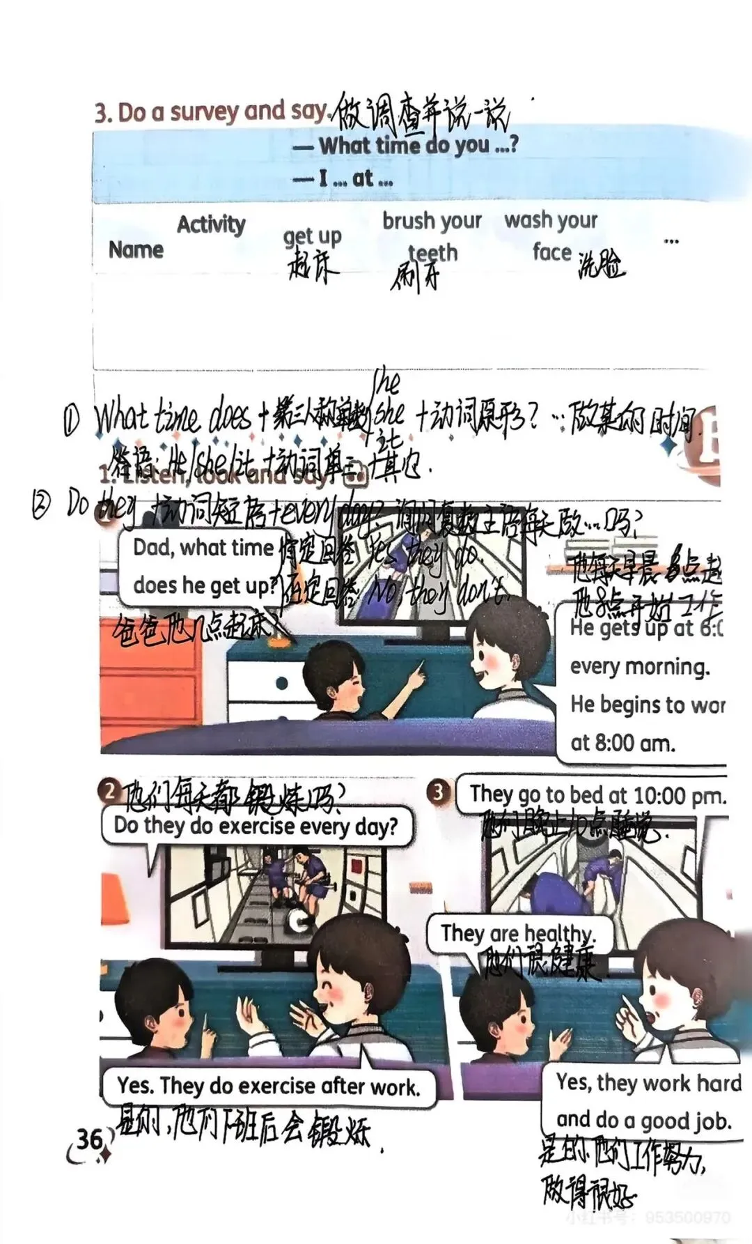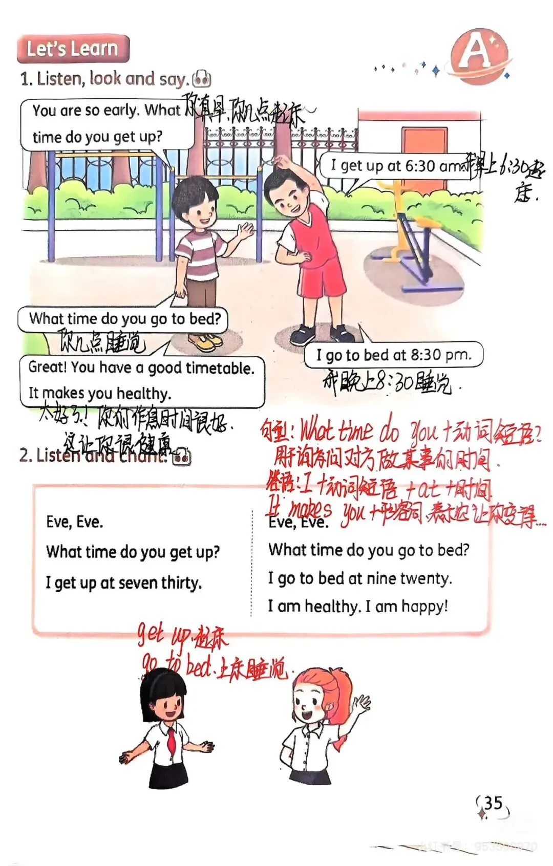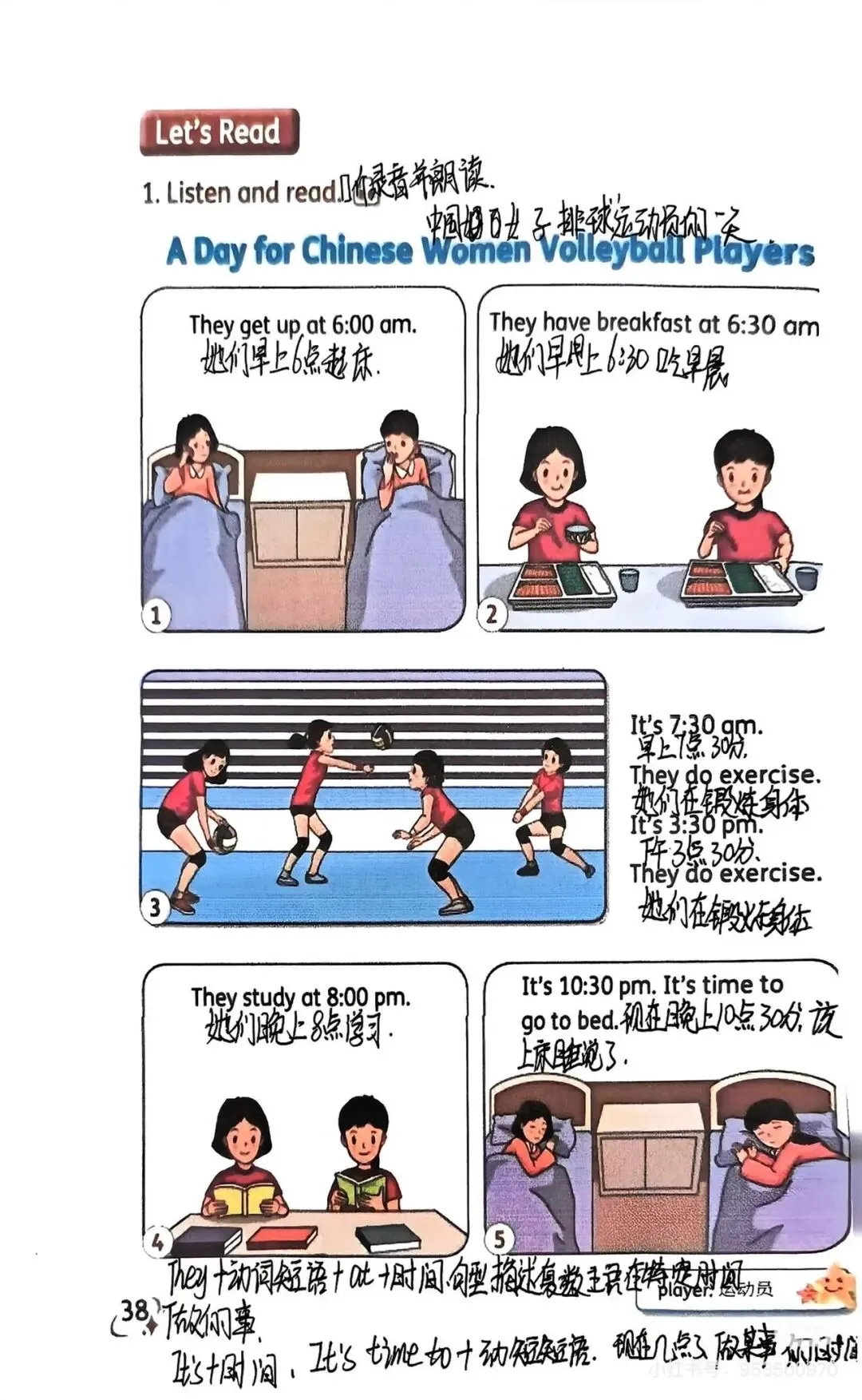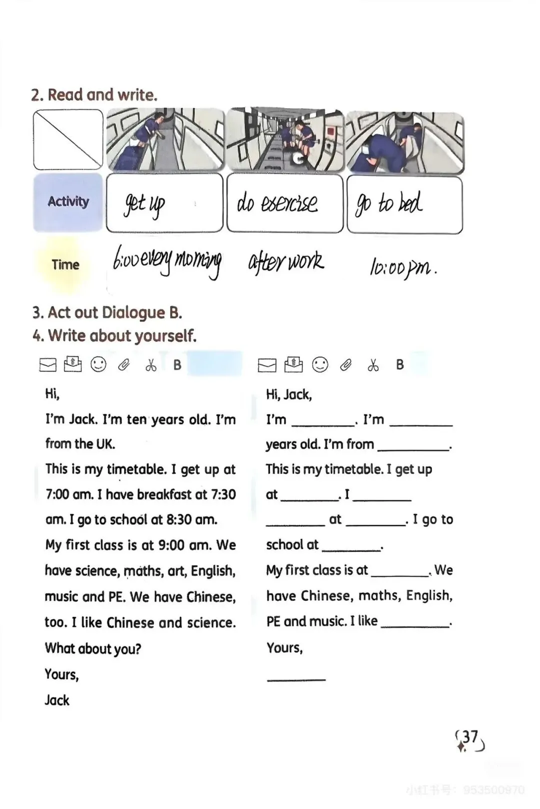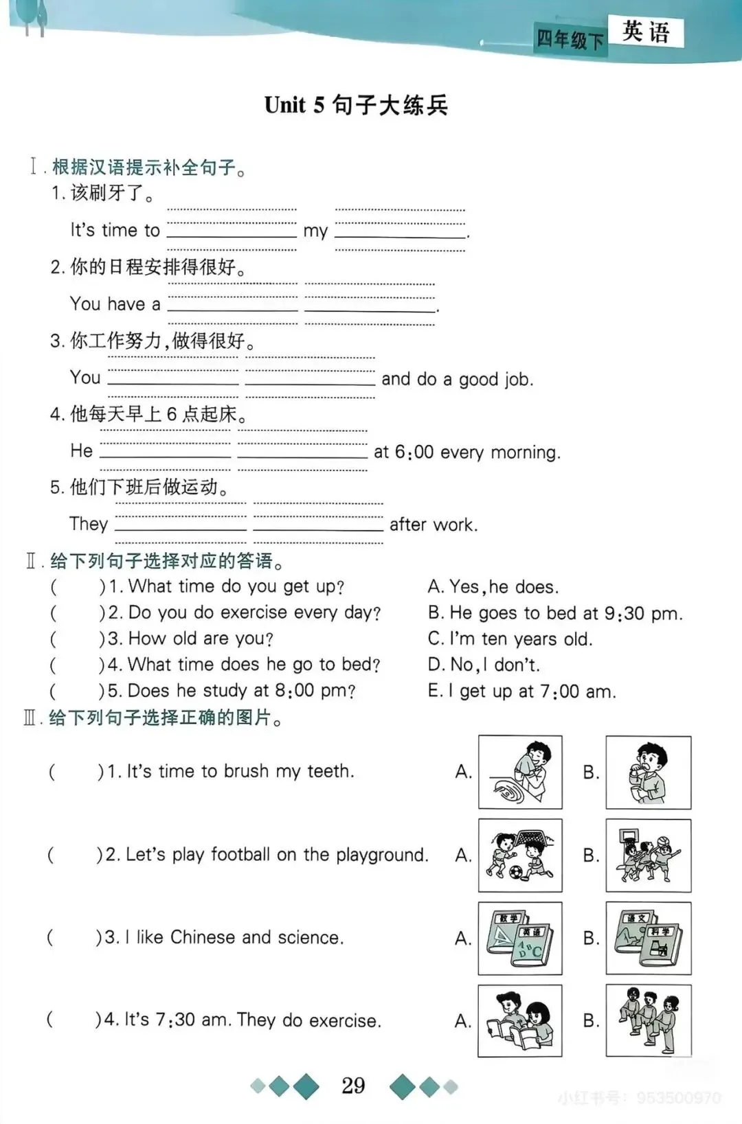 【2026年春期新教材】科普版小学英语四年级下册教材Unit5 A day's activities电子版,课堂笔记及练习题