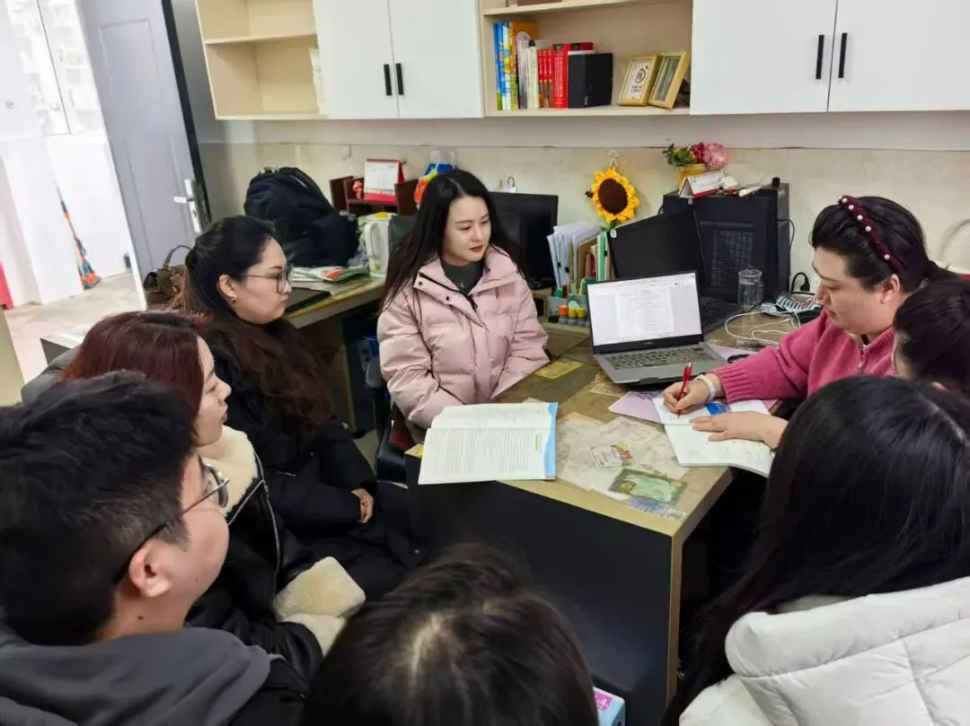 英语组的备课现场气氛热烈。老师们围绕新教材中单元整体教学的设计思路,深入解读了新教材在主题情境和语篇选择上的创新之处。大家发现,新教材语篇题材更加丰富,育人导向更加鲜明。基于此,英语组共同研讨如何依托新教材的板块设计,优化课堂活动与作业布置,实现语言学习与育人价值的深度融合,为新学期的英语教学注入新活力。