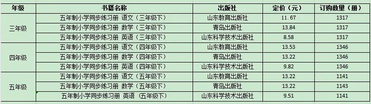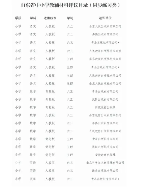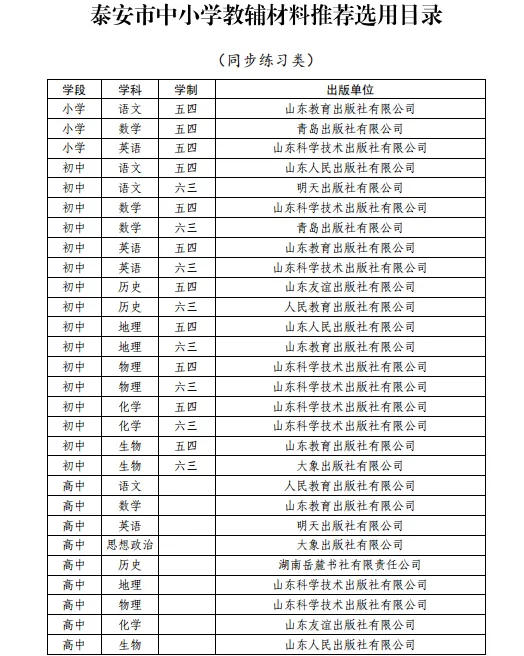 新泰市第一实验小学(含杏山校区)教辅材料选用结果公示