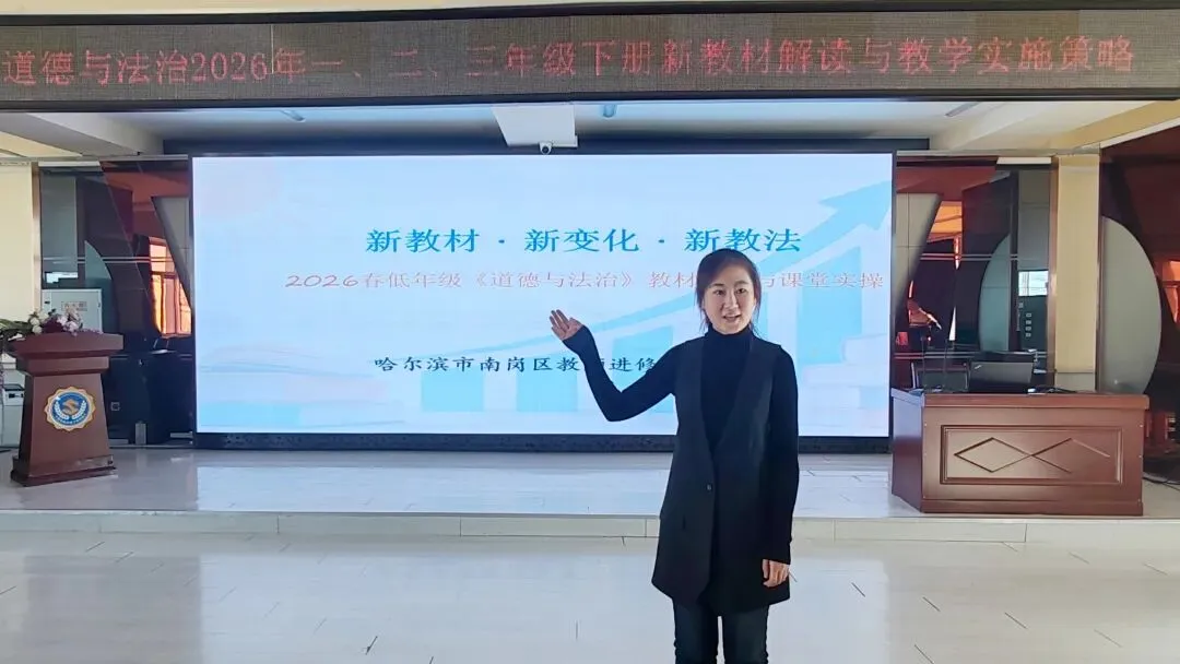为精准把握《义务教育道德与法治课程标准(2022年版)》的新精神、新变化,全面提升教师使用统编新教材的能力,2026年3月伊始,一场以“深研新教材 构建新课堂”为主题的南岗区小学道德与法治一二三年级下册新教材培训活动,在哈尔滨市苏宁红军小学校顺利举行。南岗区教师进修学校小学道德与法治学科教研员宋楠老师精心组织、全程引领本次活动,为新学期学科教学精准导航,助力教师专业成长。