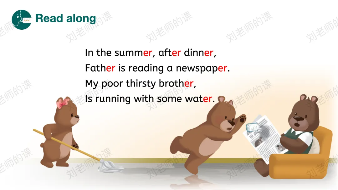 【内化与应用】在跟读中熟悉语篇内容,并通过歌谣、拼读单词、语段语篇阅读强化巩固。