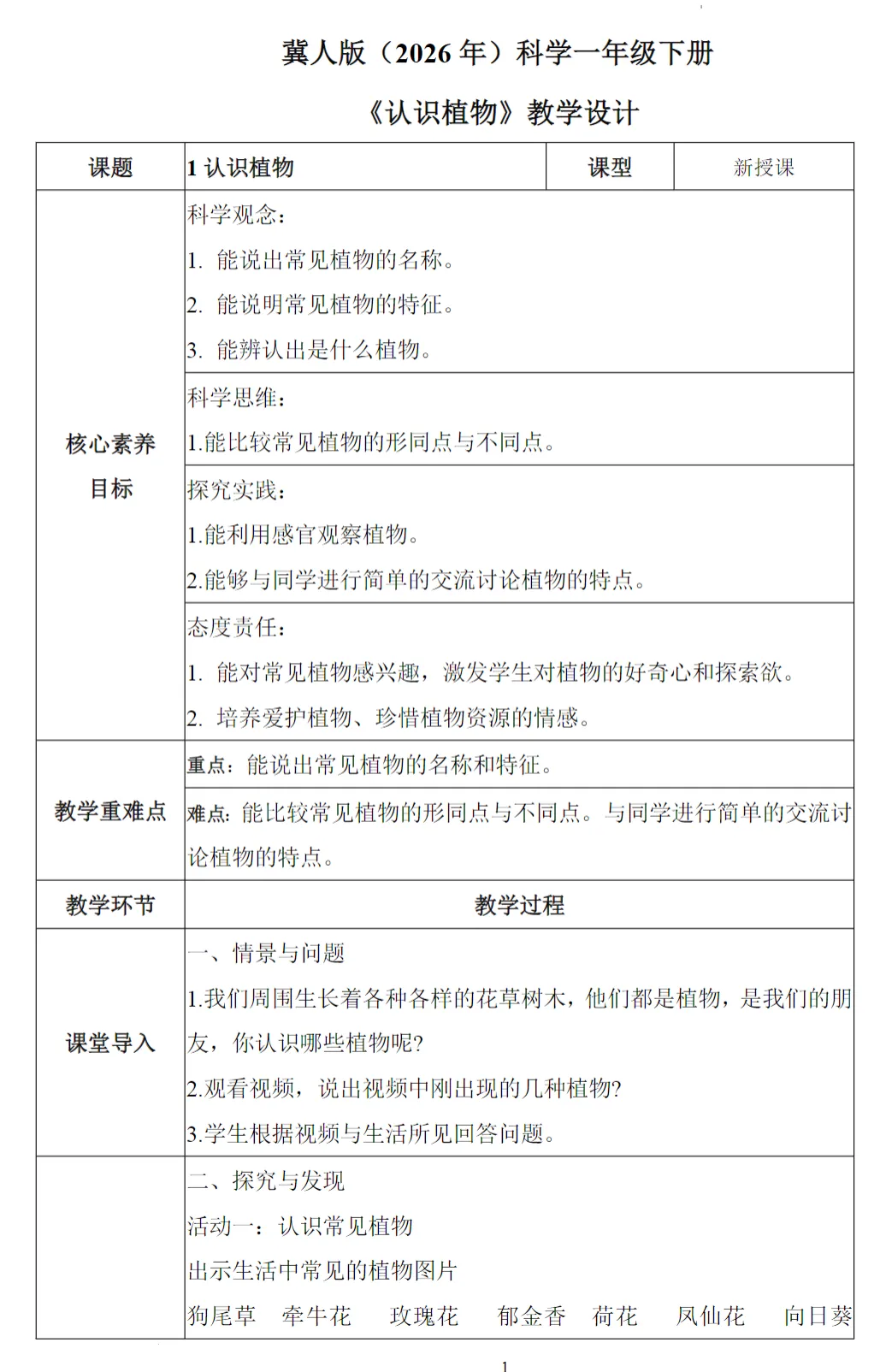 2026春人教鄂教版小学科学1年级下册核心素养教案+精品课件+素材
