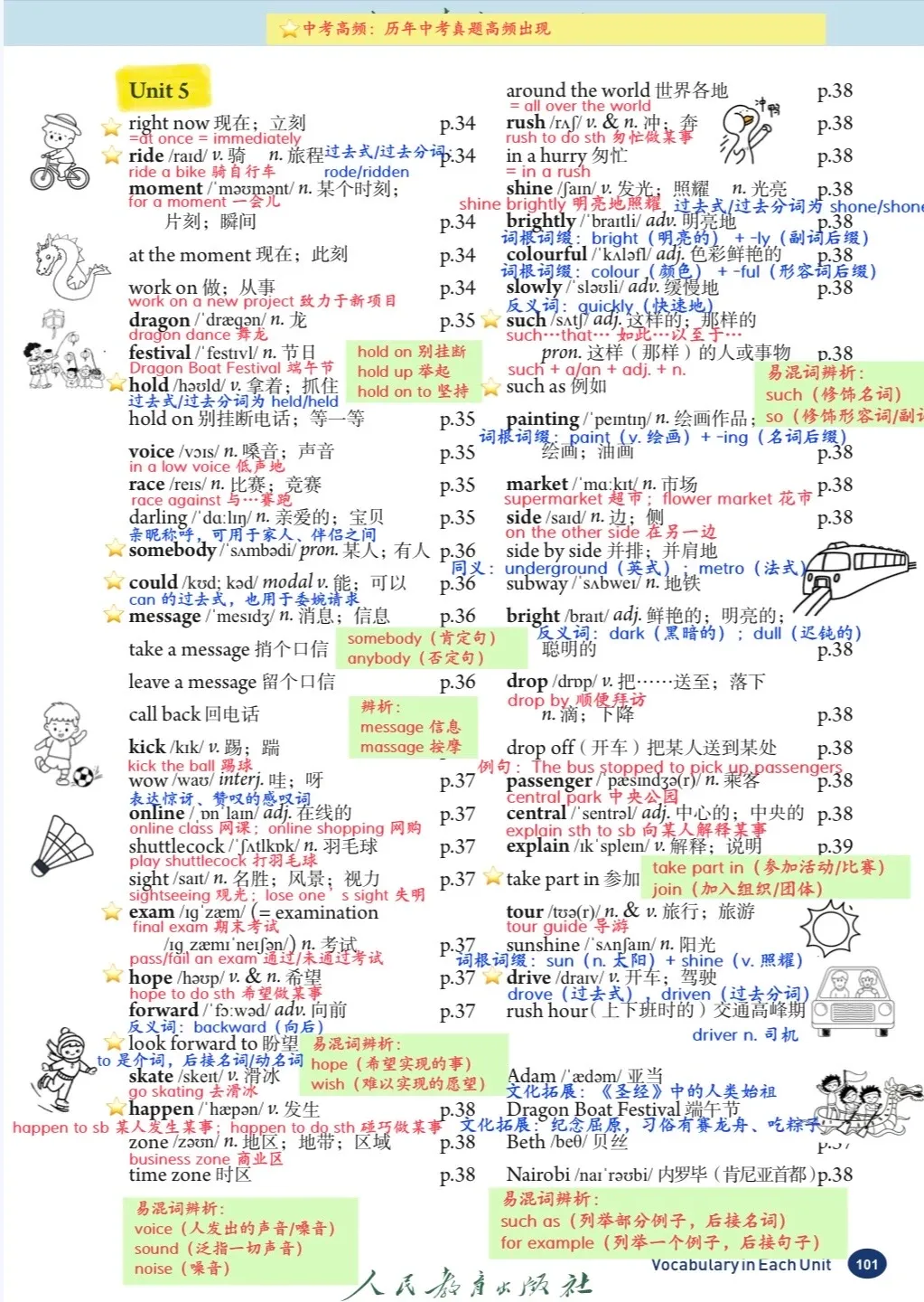 人教版初中新目标八年级下册英语电子课本+笔记+中英文默写表