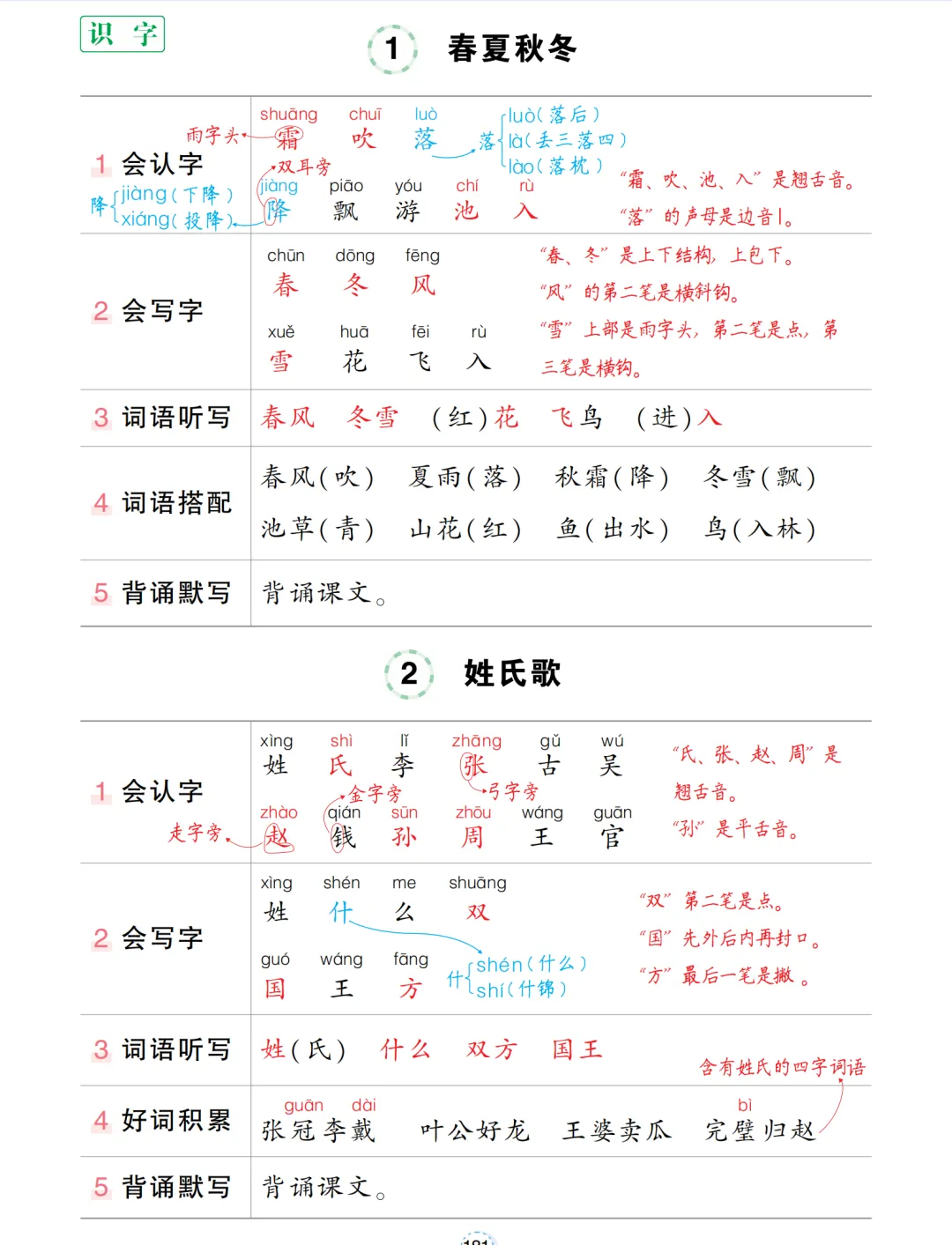 当前位置:首页>小学教材>部编版小学语文电子课本一年级下册语文笔记(背记清单)2026春季新版学习资料免费下载