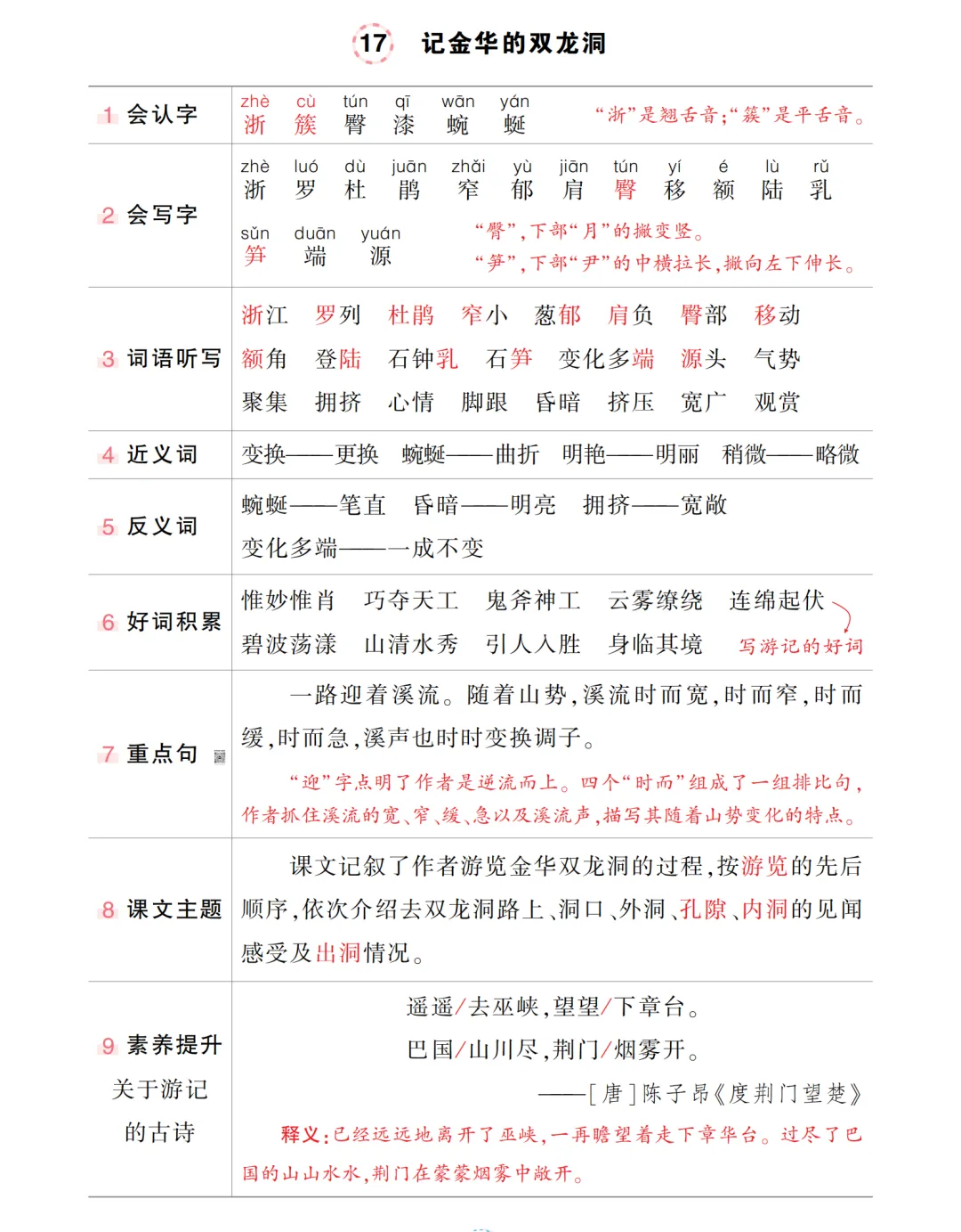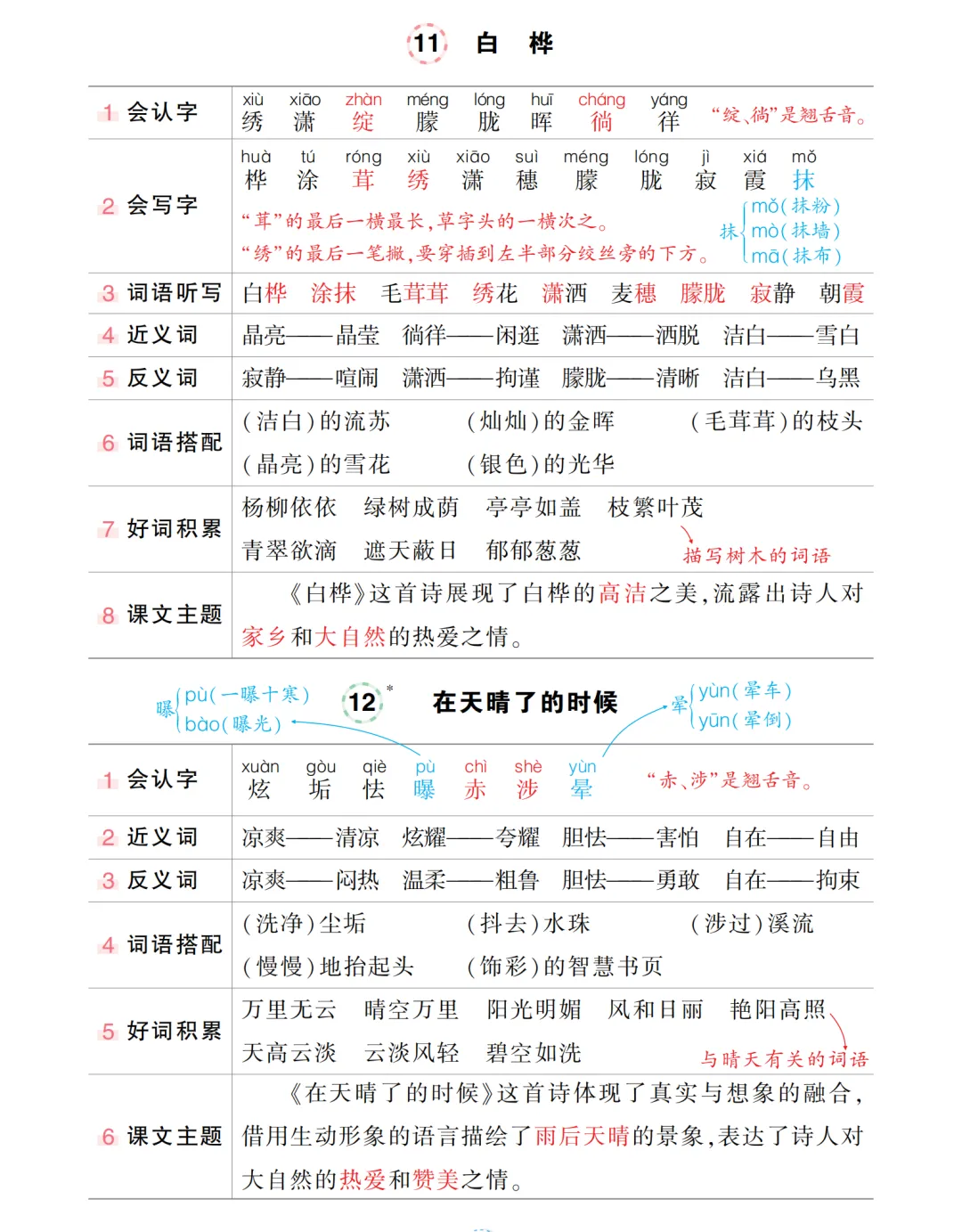 当前位置:首页>小学教材>部编版小学语文电子课本四年级下册语文笔记(背记清单)2026春季新版学习资料免费下载