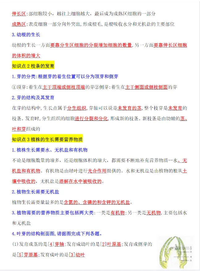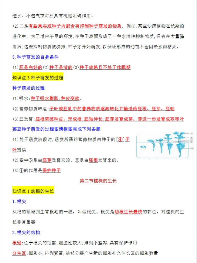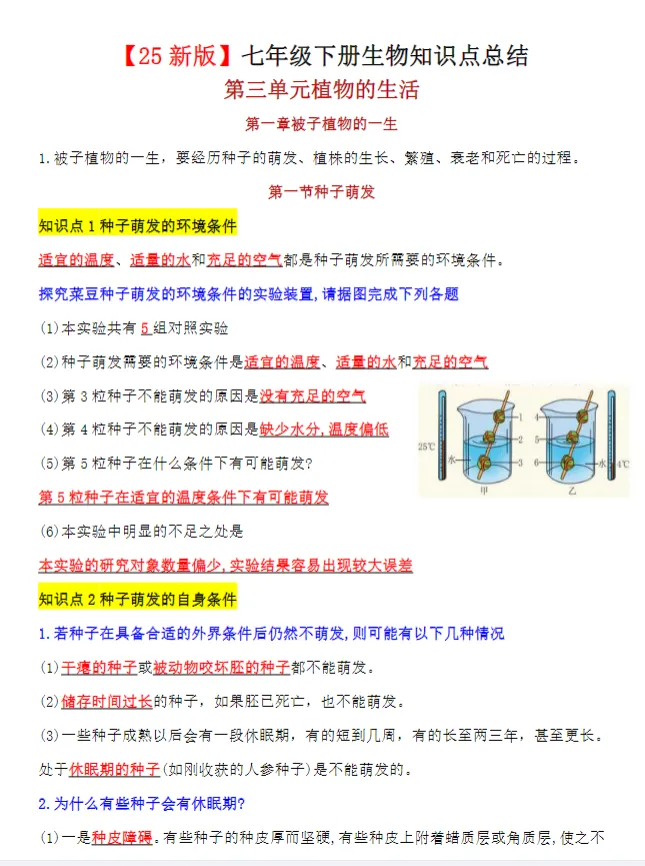>【新教材】初中七年级下册生物必背知识点