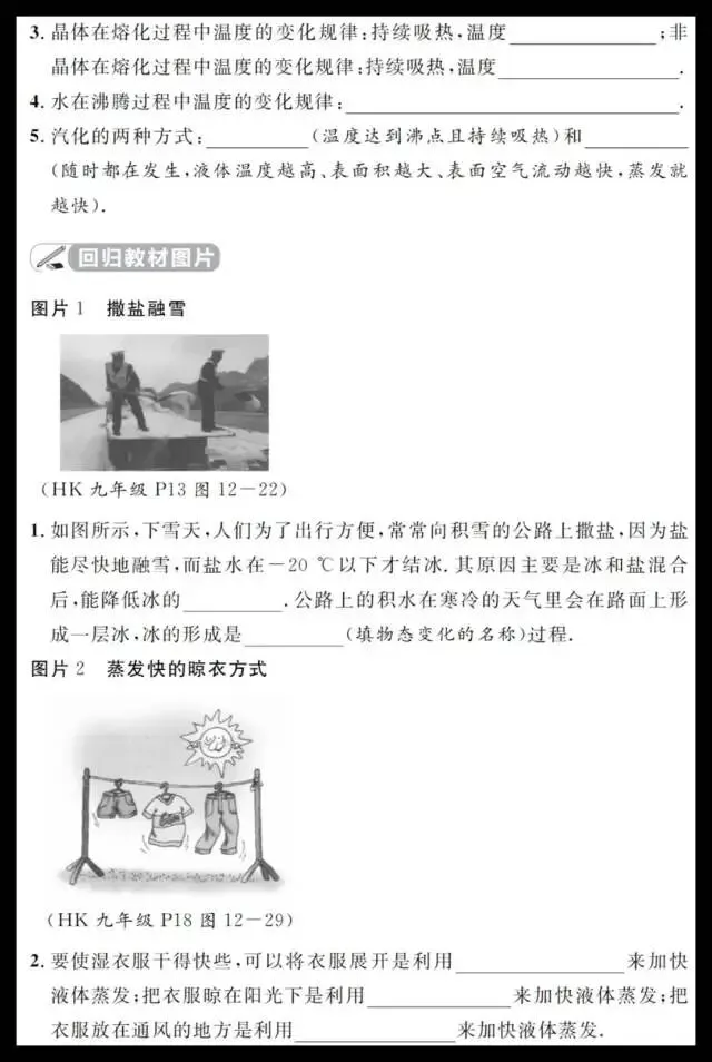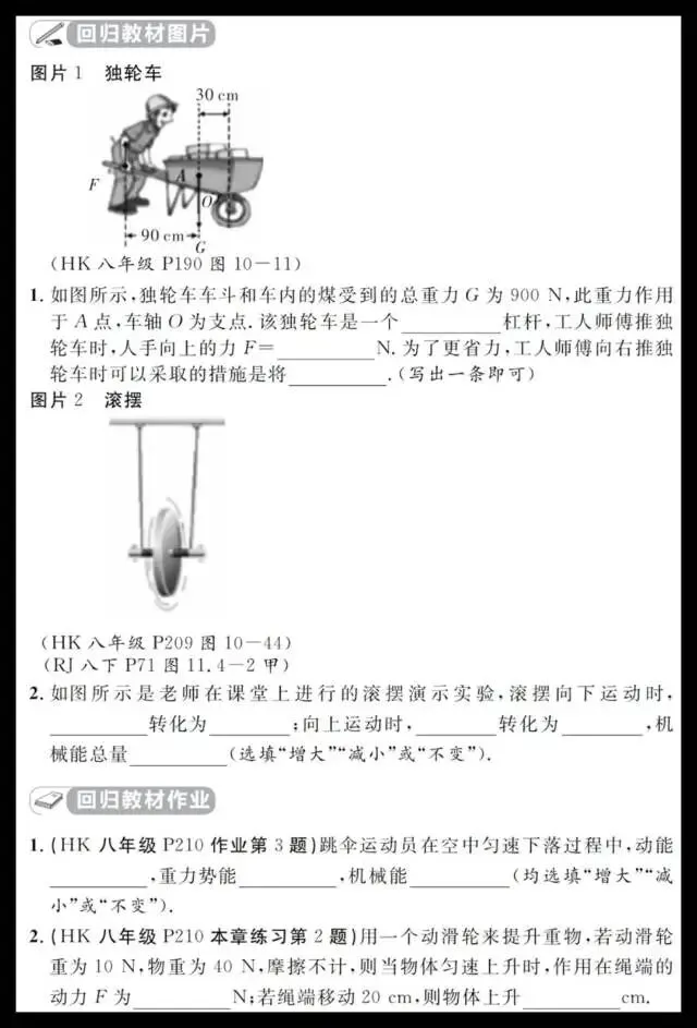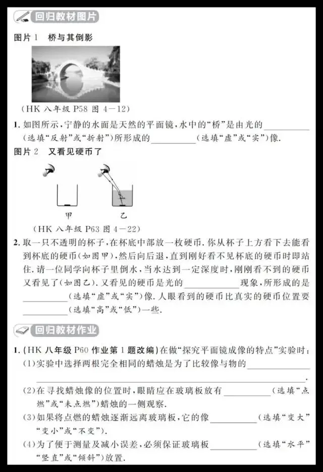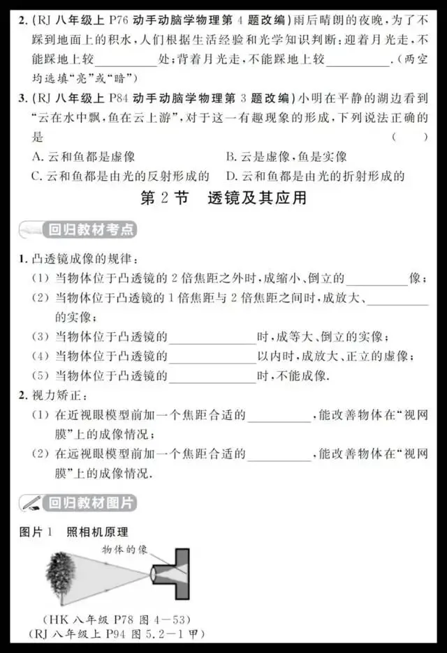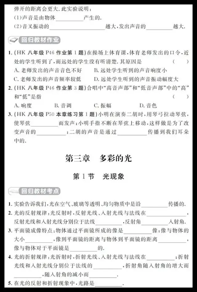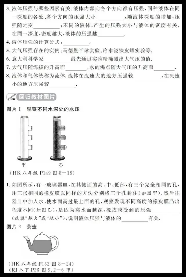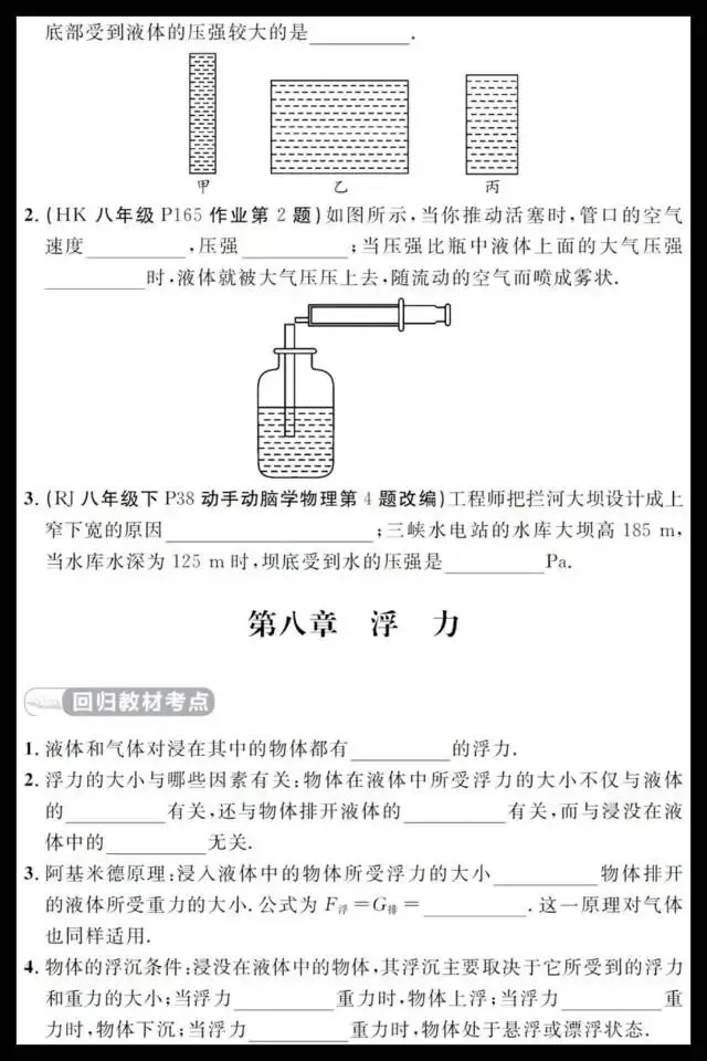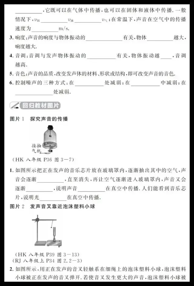 初中物理回归教材知识填空及答案pdf(适用多版本教材)