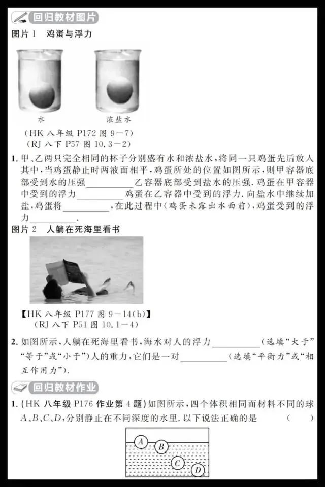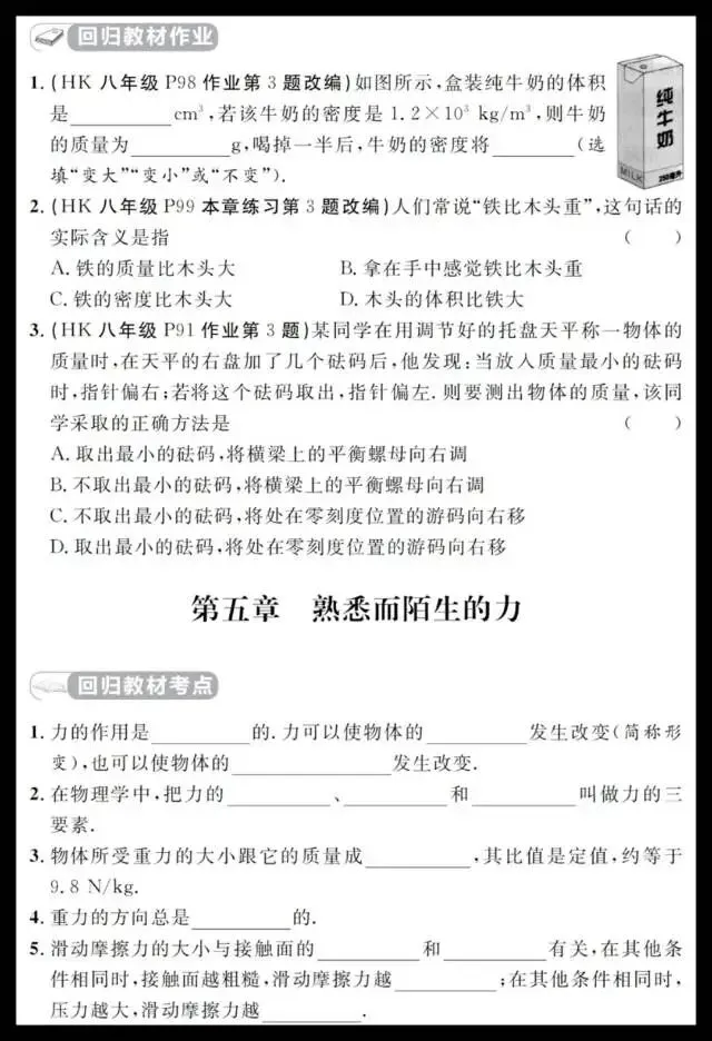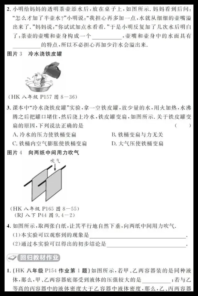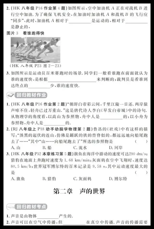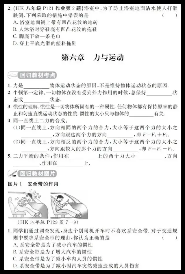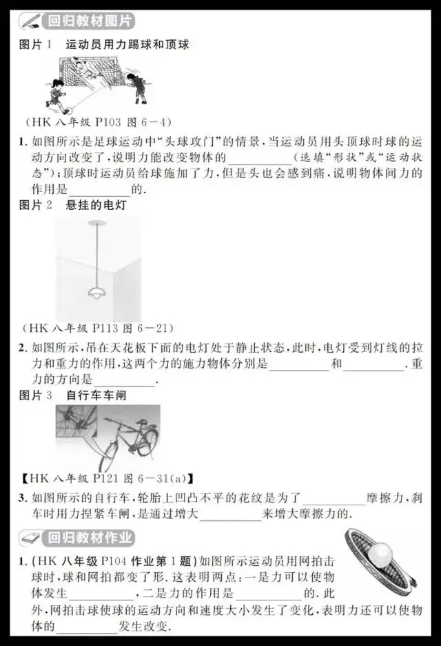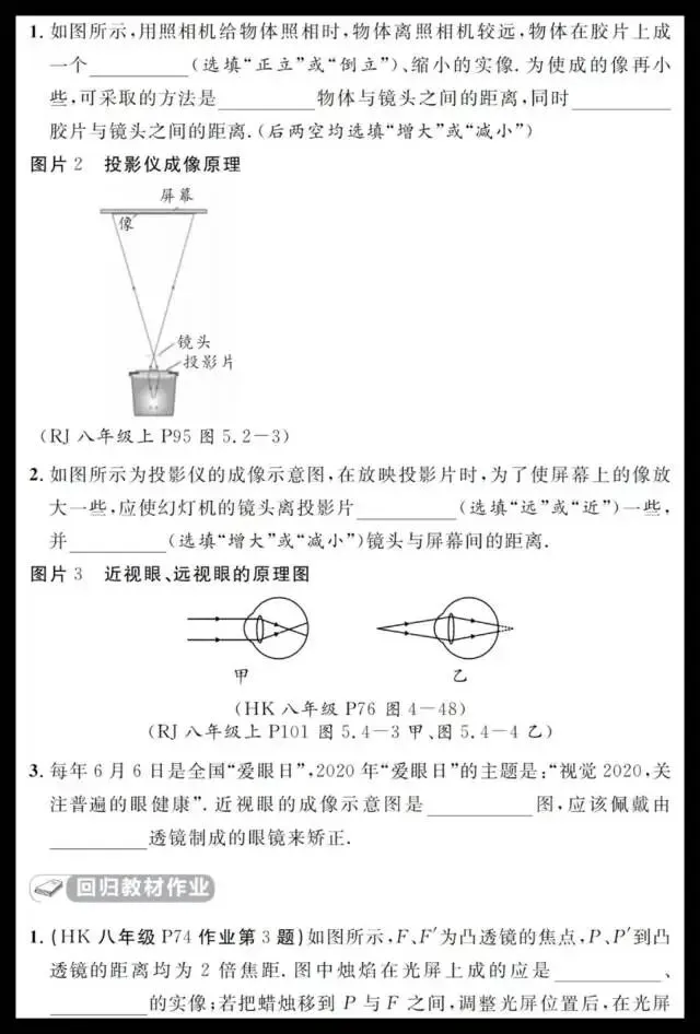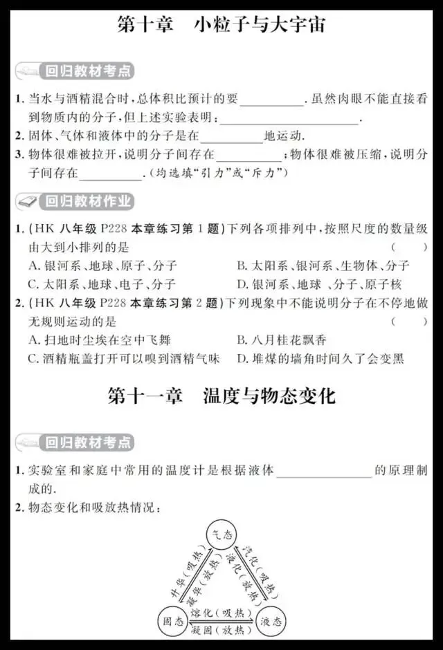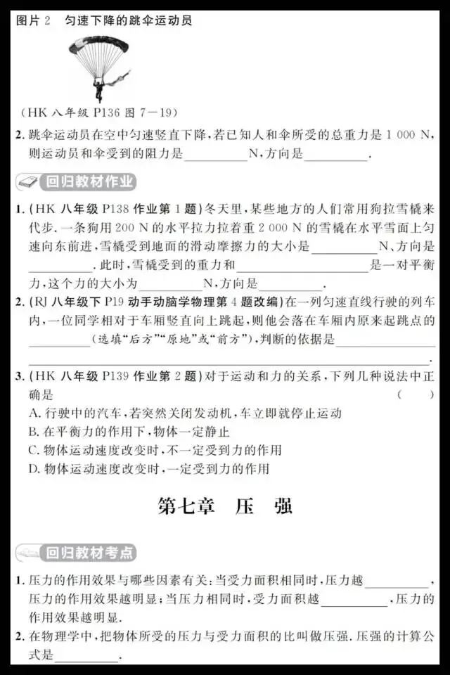 初中物理回归教材知识填空及答案pdf(适用多版本教材)