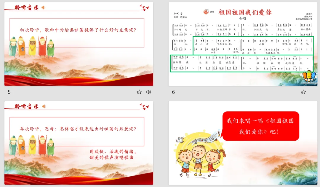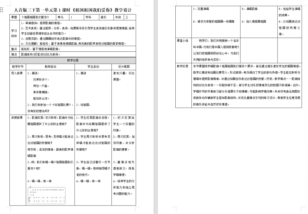 【音乐教案课件】新教材人音版小学音乐三年级下册表格配套教案课件(含反思)第1课《祖国祖国我们爱你》