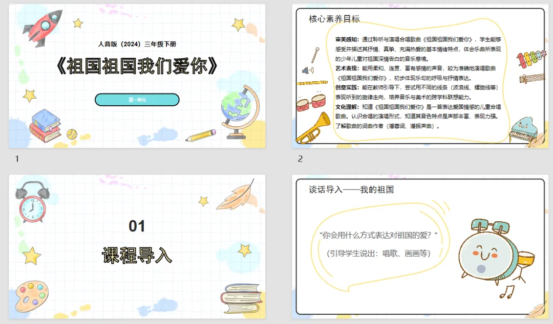 【音乐教案课件】新教材人音版小学音乐三年级下册核心素养表格配套教案课件 第1课《祖国祖国我们爱你》