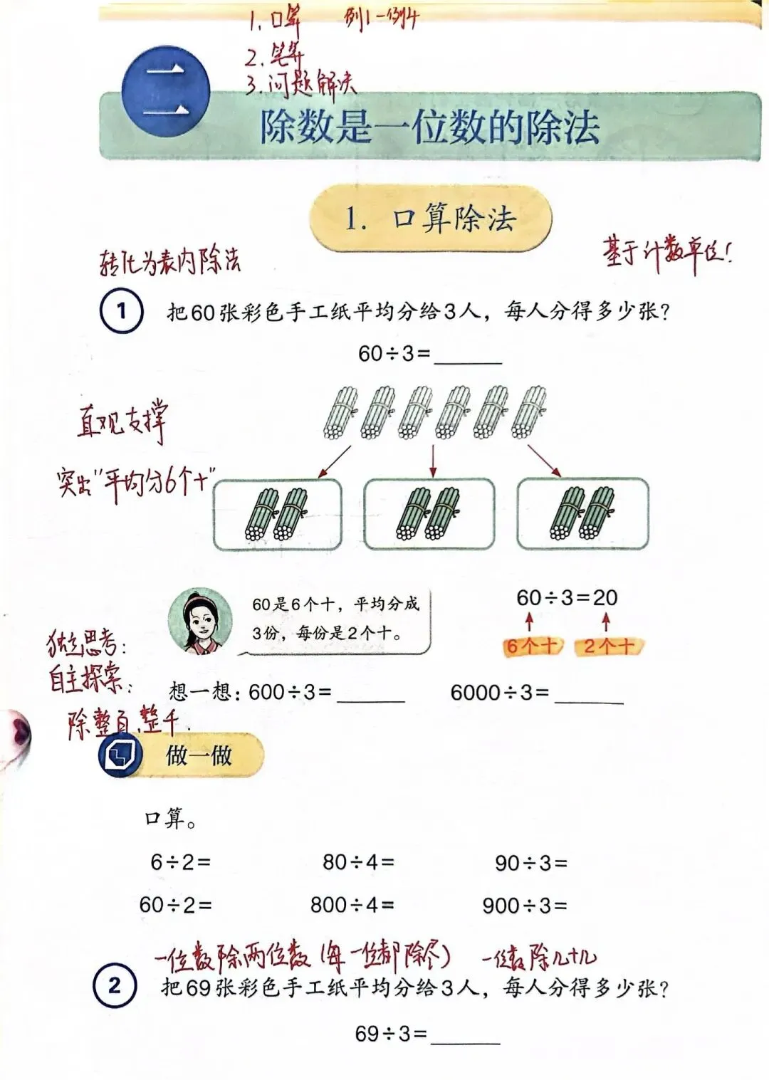 计算教学的灵魂在算理,"除法竖式不是机械操作。让学生用小棒分物,将'先分整捆再分单根'与竖式每一步对应"——解决了学生遇到"商中间有0"就崩溃的困惑。