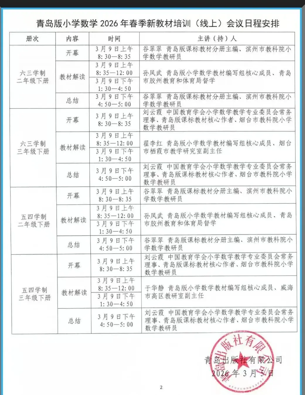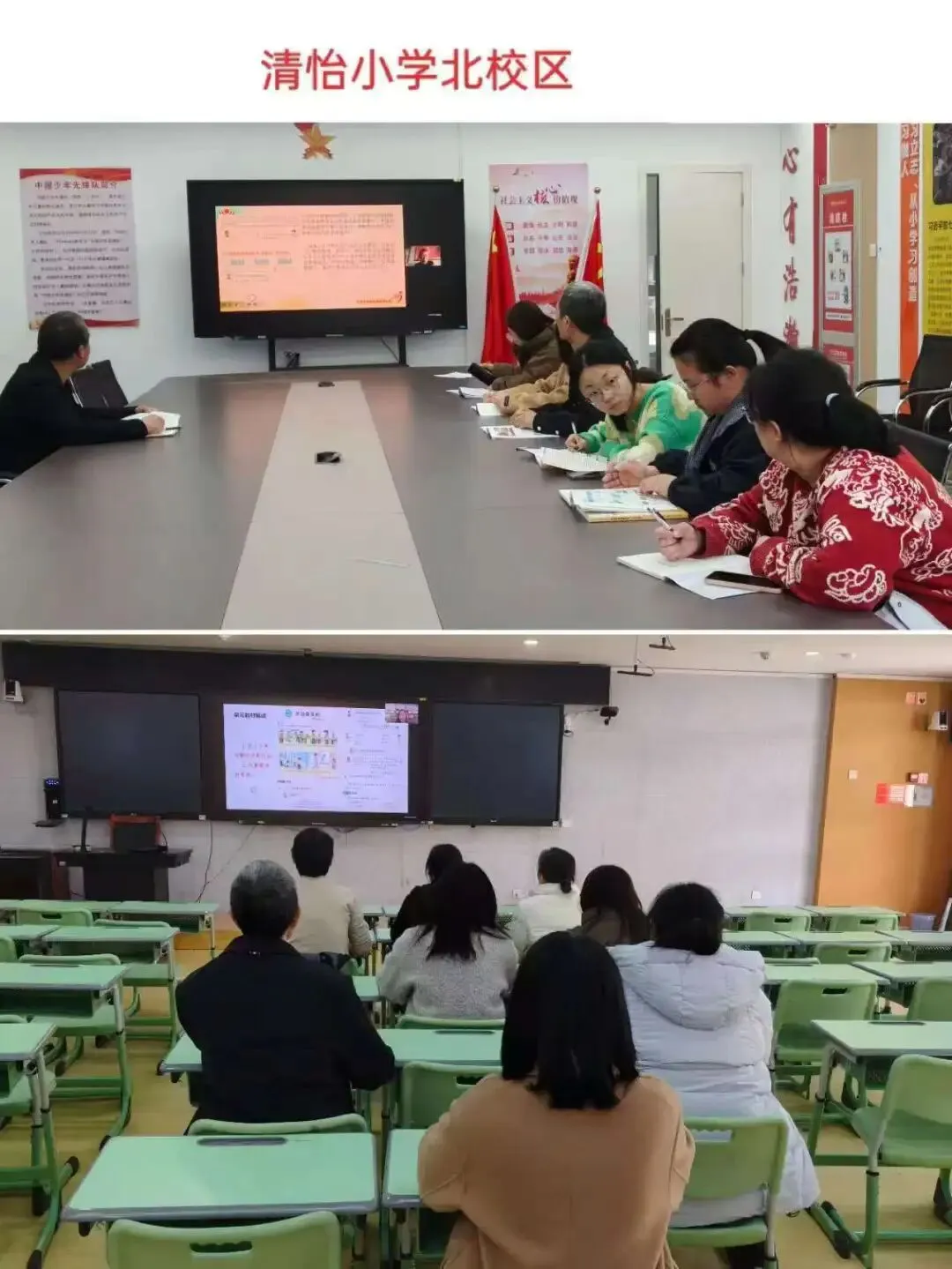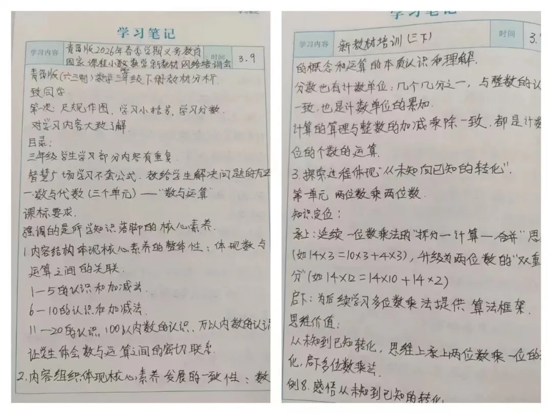 为深入领会青岛版小学数学新教材的编写理念与教学要求,精准把握教材编排体系和内容变化,提升教师专业素养与课堂教学能力,3月9日,清怡小学北校区数学教研组全体教师分成两个会场,参与了2026年春季学期义务教育国家课程小学数学新教材网络培训活动,开启了一场聚焦教材、深耕教学的学习之旅。
