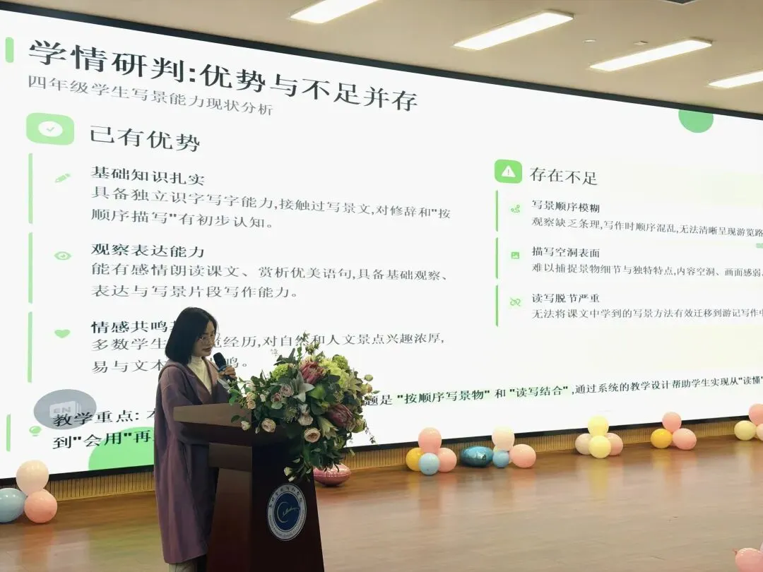 第二实验学校蔡忆老师以“循序悟法,以文练笔”为主题,带来了四年级下册第五单元的教学设计说课,为习作单元的教学提供了清晰的实施路径。