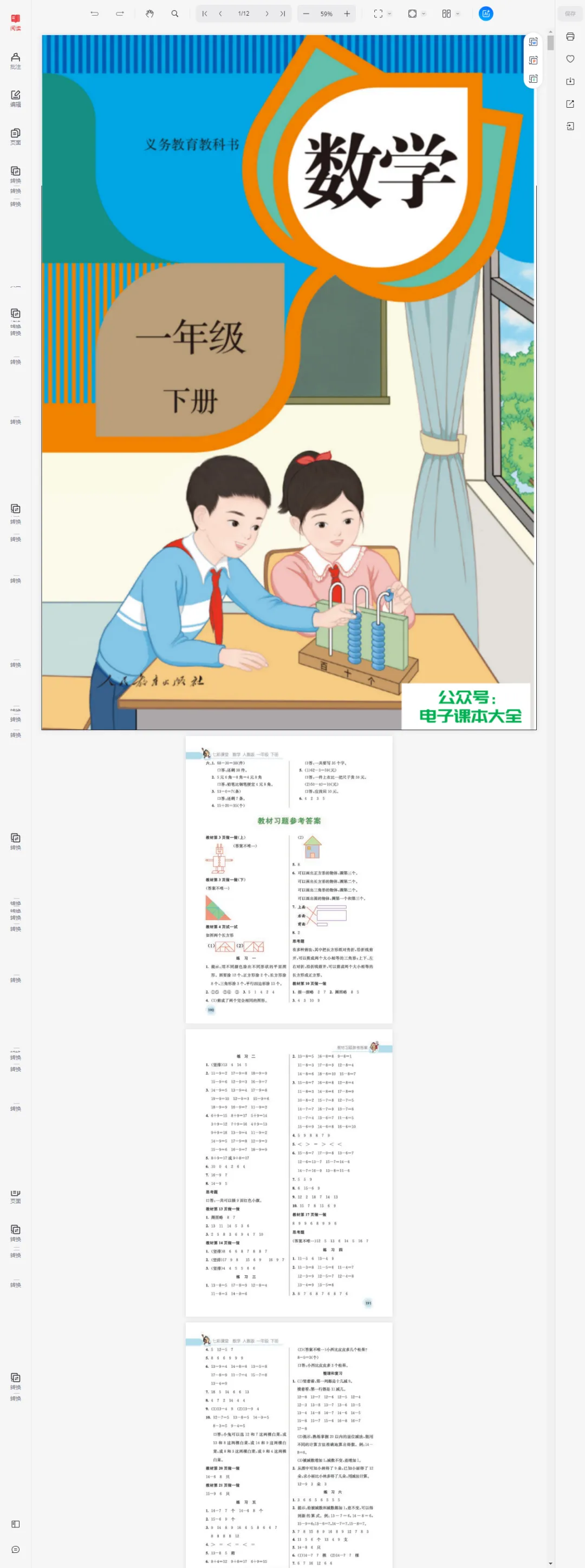 >小学教材习题答案一年级下册人教版数学课本参考答案