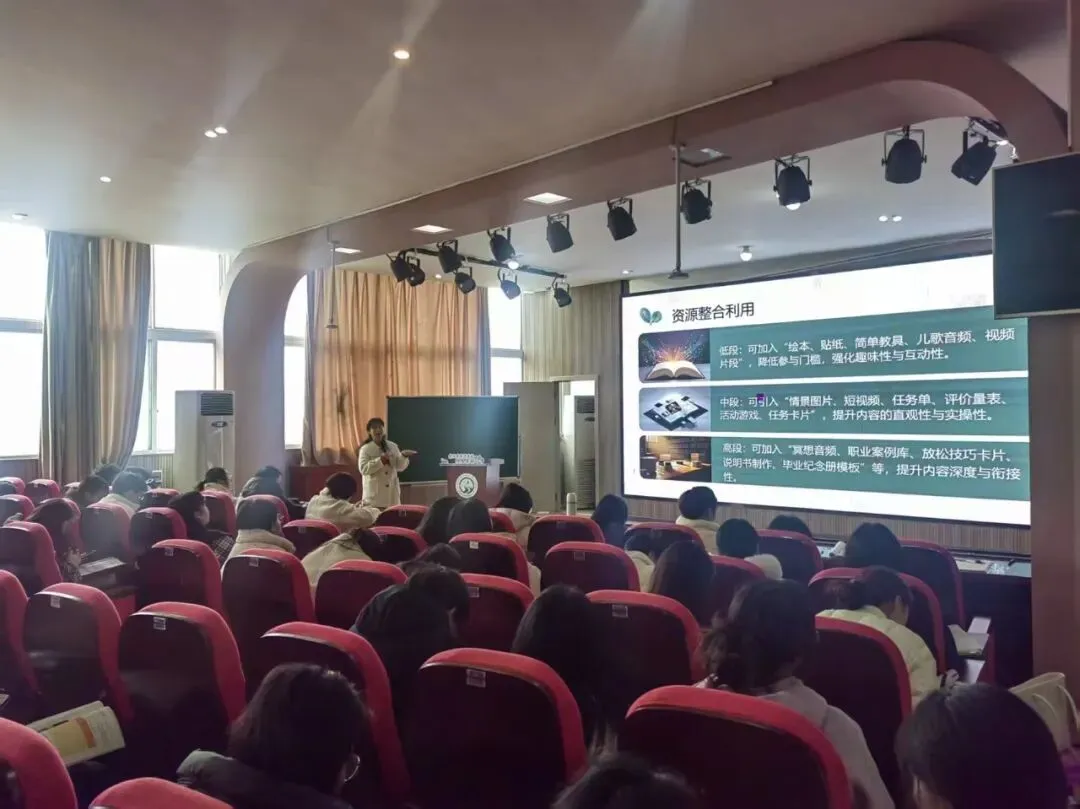 然后,字老师讲解了跨学段衔接逻辑与课堂教学中的实施技巧,建议老师们每个阶段根据学生年龄特点有侧重地选择教学形式,注重资源整合。