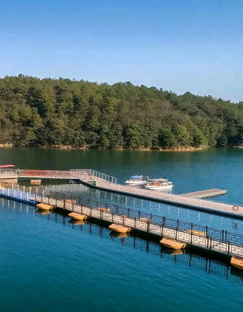 - 之后抵达庐山西海的云居岛码头,稍适休整开始徒步欣赏庐山西海七岛美景。全程徒步约8公里(云居岛-女神岛-箬溪岛-西海之星-明珠岛-沧海岛-桑田岛),时间充分的朋友还可以前往渔村群岛游览。