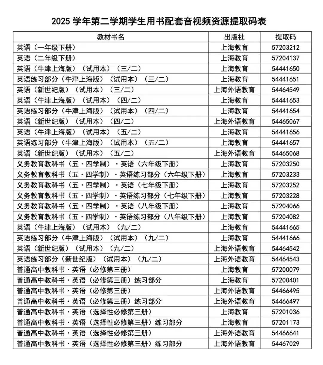 上海公办学校的英语教材配套听力资源,都能从下文的网站中找到,包含从小学到高中的所有年级的教材及配套练习册,免费下载,非常好用。