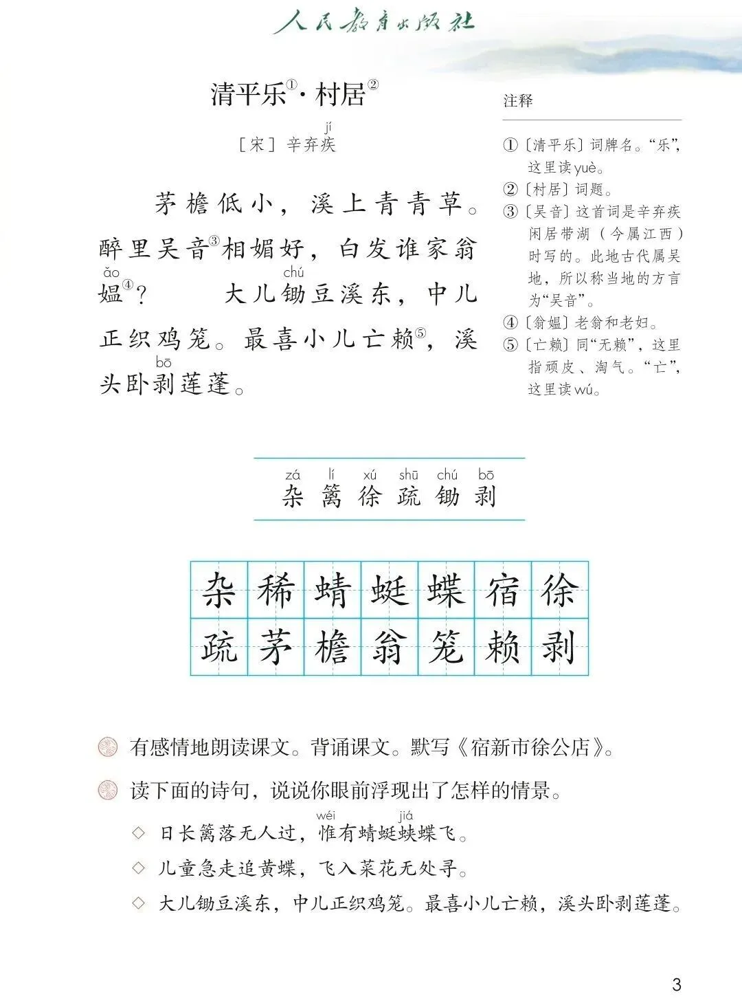 ②吴音:这首词是辛弃疾在江西饶州闲居时写的。饶州,古代属于吴地,所以称当地的方言为“吴音”。