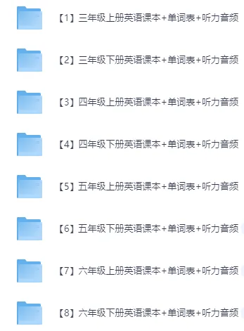 3-6年级全册英语课本+单词表+听力音频