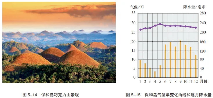 (3)巧克力山的最佳观赏时间为每年5月份。结合区域气候特征,分析其原因。