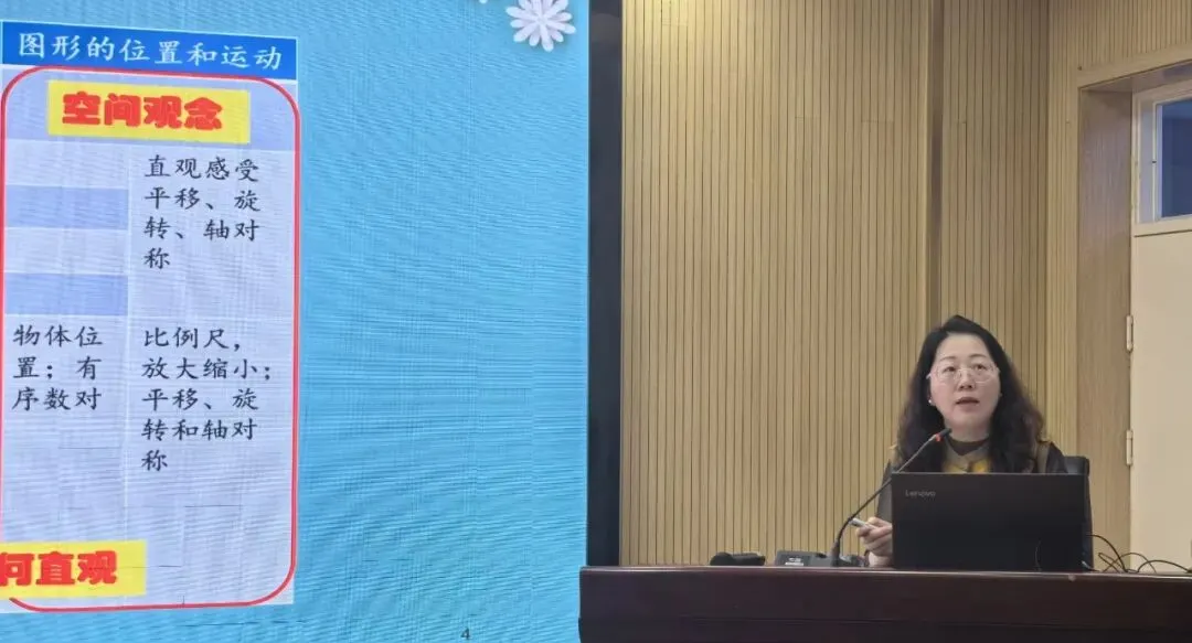 银河小学王文燕主任围绕《长方形和正方形》《图形的面积》单元,明晰新课标学段要求,对比新旧教材变化,阐释周长与面积整合教学的编写意图,解读多边形认识、尺规作图等教学重点及新增内容教学方法,建议通过实操活动帮助学生区分周长与面积概念,发展量感、空间观念、几何直观等素养。
